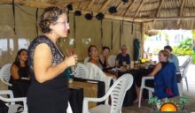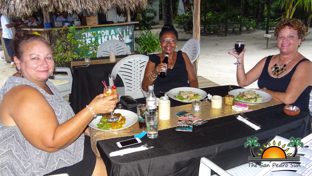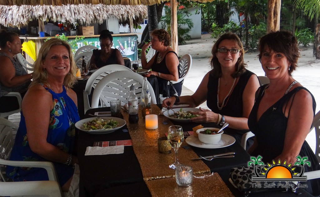 The event kicked off a bit late, due to rain but nevertheless saw the group of ladies enjoying great conversation over assorted beverages. For the cost of $85BZ, attendees were treated to a complimentary drink, appetizers, meal options including Caribbean seafood bacalao, grilled jerk style chicken, and a cashew pesto salad. Dessert options included decadent chocolate brownies and key lime pie.