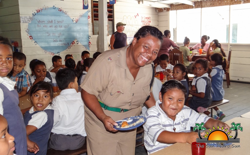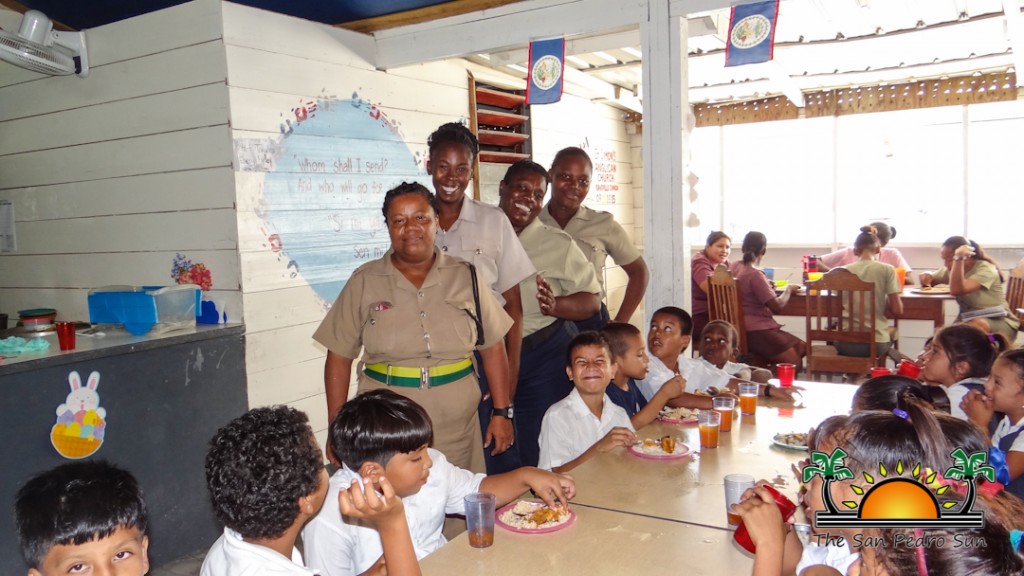 As part of their initiative, Officer in Charge of the Coastal Executive Unit, Superintendent Sandra Bowden, along with three female officers assisted in the Holy Cross Feeding Program on Wednesday, March 16th. Through participating in the feeding program, the San Pedro female officers joined the kitchen staff at Holy Cross Anglican School to prepare and serve a wholesome meal for the students. Bowden was joined by Woman Police Constable (WPC) 1554 Areille Young, WPC 1049 Yadira Jones and WCP 1672 Veralina Arthurs.