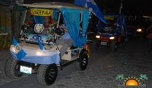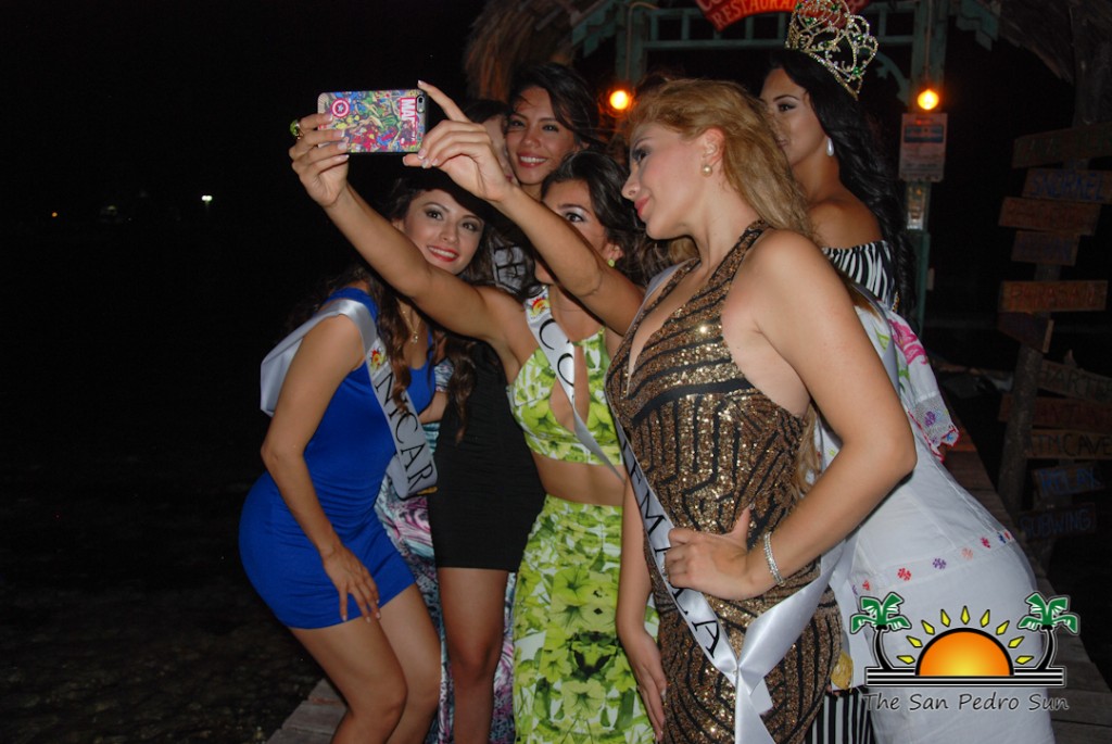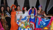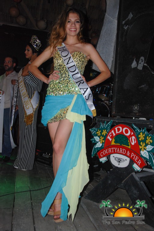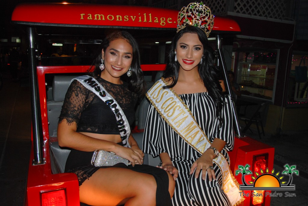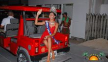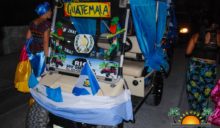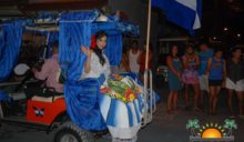 To the sound of drumming and cheers of the crowd gathered to watch, elaborately decorated golf carts carried the beauty representatives from Belize, Costa Rica, El Salvador, Guatemala, Honduras, Mexico, Nicaragua and Panama from Finn + Martini on Laguna Drive down Pescador Drive to the ultimate destination: Fido’s Courtyard and Pier.