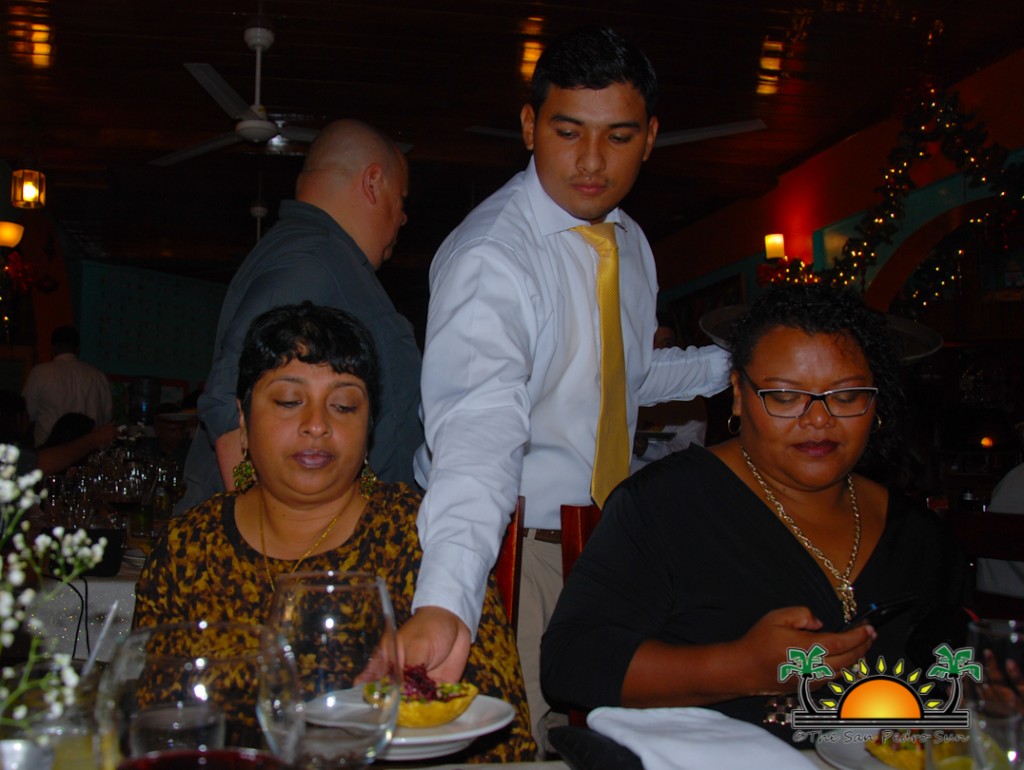 A fantastic video was shown before the main course was served, which featured surf and turf pairing of local Spiny Lobster and imported steak. Guests joined in prayer as Mrs. Elvia blessed the meal in her Catholic tradition. Following the meal, it was Area Representative Honourable Manuel Heredia Jr.’s turn to speak. As all the speakers before him, he made his speech short and sweet, offering up his congratulations to the Elvi’s Kitchen family.