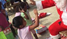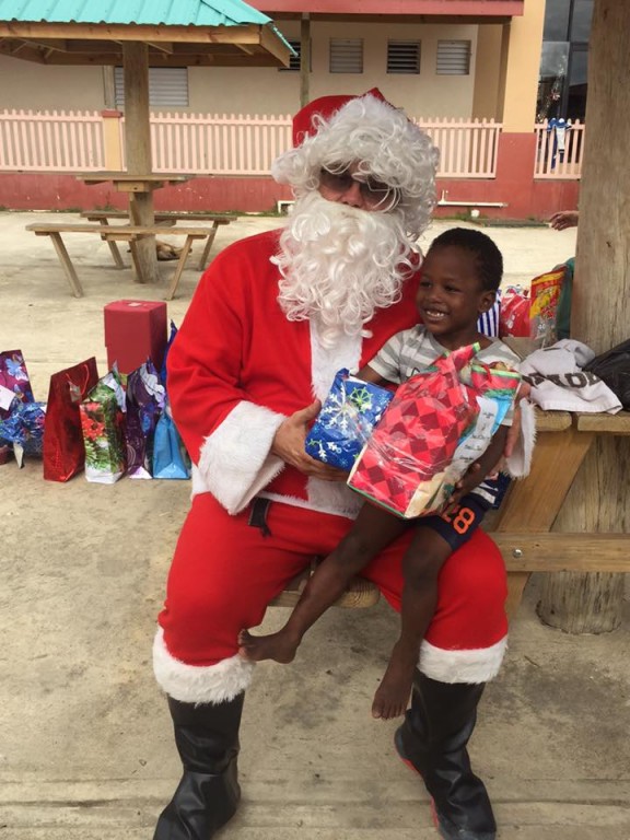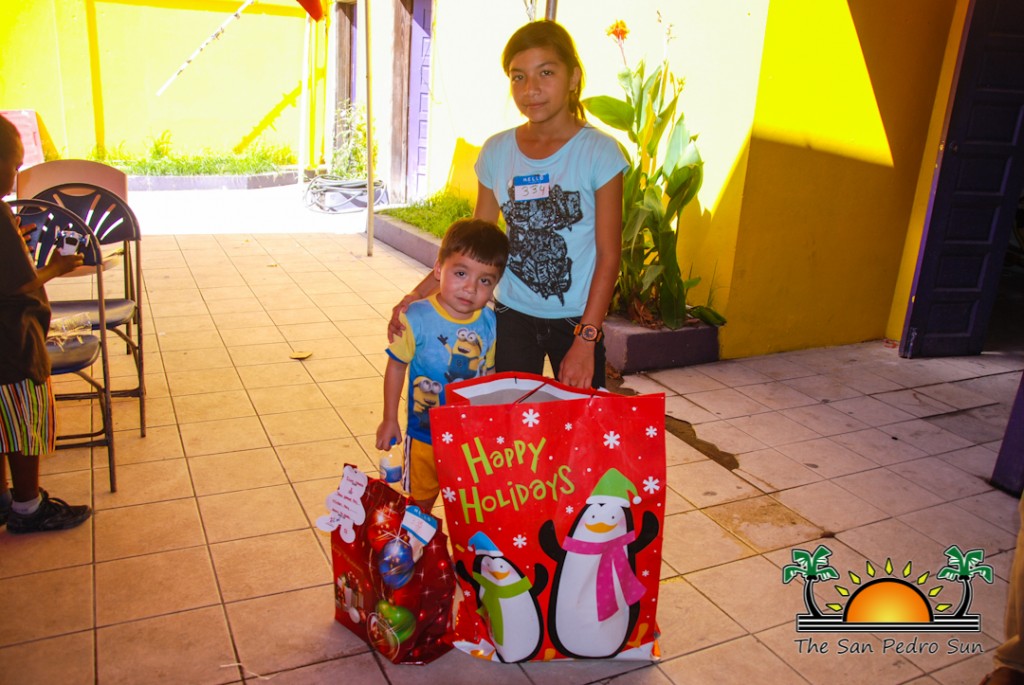 The children received their gifts on Wednesday morning at the San Pedro Lions Den. Santa and his elves were busy at the Den helping to distribute the many presents to each child, who happily posed for pictures with Santa. The children were certainly grateful for their gifts, and thanked Santa with hugs and smiles. Many of them probably would have spent a Christmas without presents.
