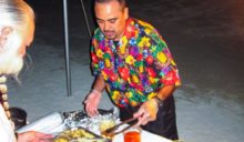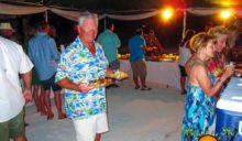 Thanks to the generosity of Caliente Restaurant, Caprice Bar & Grill, Pineapples Restaurant, Hidden Treasure, Estel’s Dine by the Sea, Sabine’s Corner, PepperOni’s, Coconut Café and Paradice Cream, attendees enjoyed a hearty meal filled with a variety of specialties from each station. From snapper cakes topped with pineapple salsa, to wontons, bruschetta, barbecue ribs, boneless wings, ceviche, ice cream and cinnamon rolls, there was enough food for everyone, and even seconds for those who couldn’t get enough. Everyone dug in heartily as Daryl serenaded the crowd.