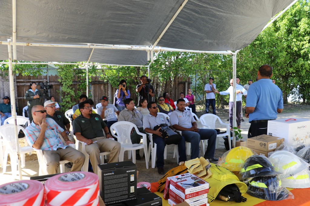 The wildland fire-fighting protective gears and equipment are worth more than BZ$117,000 and form part of a Fire Incidence Rapid Response Team strategy to better manage forest fires. Some of the items being distributed include helmets, fire-fighting protective clothing, leather gloves, goggles, Kestrel pocket weather station, council combination tool, axes, rakes, swatters, bladder bags, drip torch, fuel containers, chain saws, long handle shovels, global positioning systems, drones, and radios.