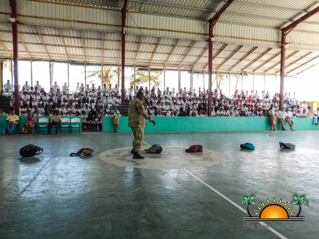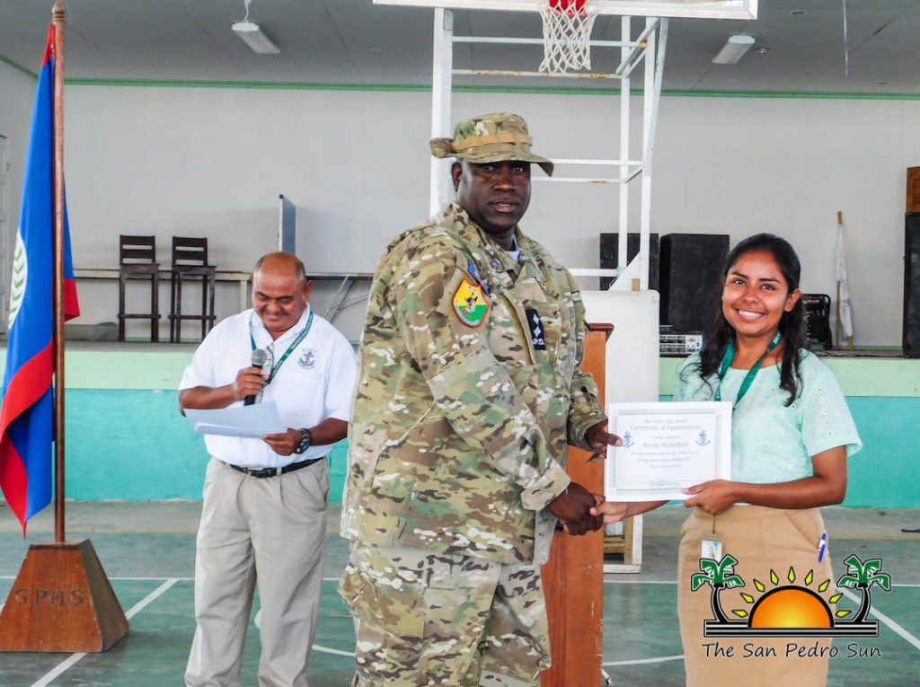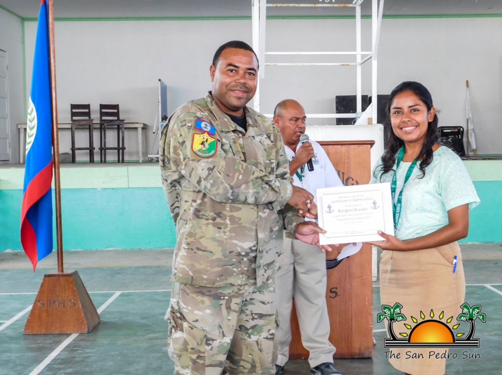 In his speech, Perez acknowledged that since Monday, March 27th, Belize had recorded seven murders over the weekend. He asked the students to think about what direction the country is headed in, and what possible future awaits the younger generation. “We are fast approaching 100 murders for the first quarter of the year. If you listen to the news, you will hear about the budget, and the escalating commodity prices, you may be asking what does this has to do with drug awareness. The presented budget shows that less money will be spent in the police and fire department, and among other sections, the unemployment rate will increase. When this happens, some will choose to survive by robbery, assault, or drug peddling, and this becomes a vicious cycle. Teenagers in this era begin to experiment with drugs, alcohol, and other illegal narcotics at a young age. Since there is easy access, the consumption of alcohol or use of drugs leads to high risk behavior, early sexual activity, and violence. I challenge all students to become responsible of their lives and make choices that will not affect your future,” said Perez.
