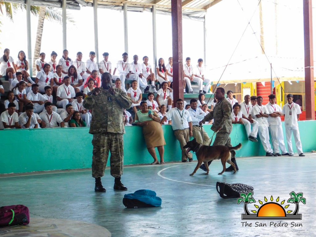 Guest speaker, Sergeant Brent Hamilton shared his life story, while he engaged with the student body to grab their attention. Born and raised in George Street Belize City, Hamilton is currently an Inspector for the Belize Canine Unit, and works closely with seven special bred dogs in his force to find illegal drugs and firearms, and locate missing persons. He began reflecting on his childhood, and stated that he joined the George Street Gang at the age of seven. Since he did not have interest in attending school, he was pressured to experiment with drugs at an early age, and began stealing valuable items.