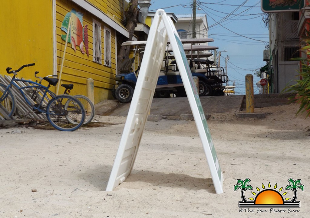 In an effort to make room for more parking spaces and reduce congested streets around town, The San Pedro Town Council (SPTC) is enforcing its sandwich boards regulation. Already in effect, the implementation will see the immediate removal of such boards that impede the free flow of pedestrians and are becoming an issue for drivers. The SPTC is kindly asking business owners to cooperate with the norm and to begin removing their sandwich boards before they are picked up by SPTC personnel.