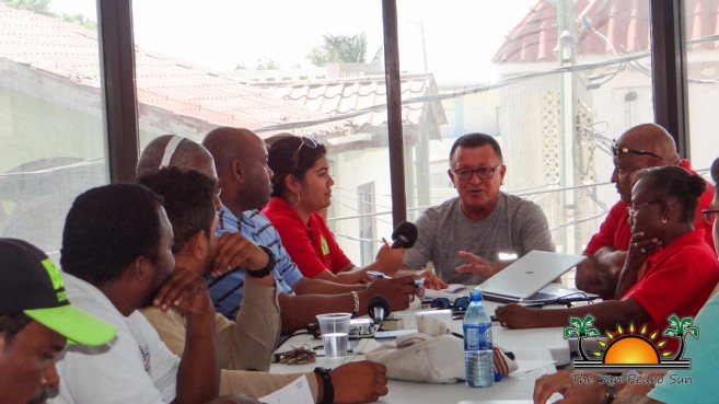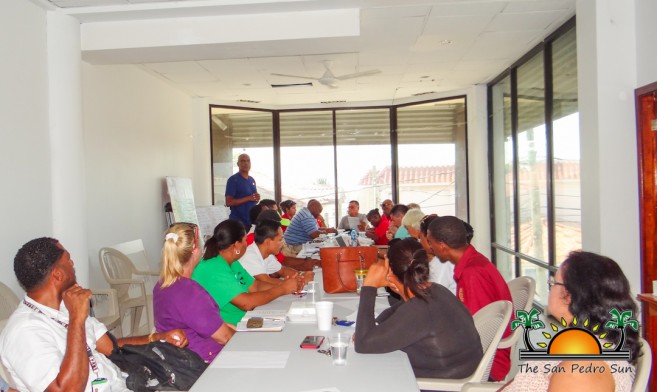 The gathering was headed by Minister of Tourism and Belize Rural South Area Representative Honourable Manuel Heredia. Also present were Deputy Chairman of the San Pedro EOC, Mayor Danny Guerrero; Regional Coordinator, Al Westby; Belize Rural South Coordinator, Vanessa Parham, who chaired the meeting; and the outgoing Coordinator for that area, Timrose Augustine, who is now stationed in Belize City.