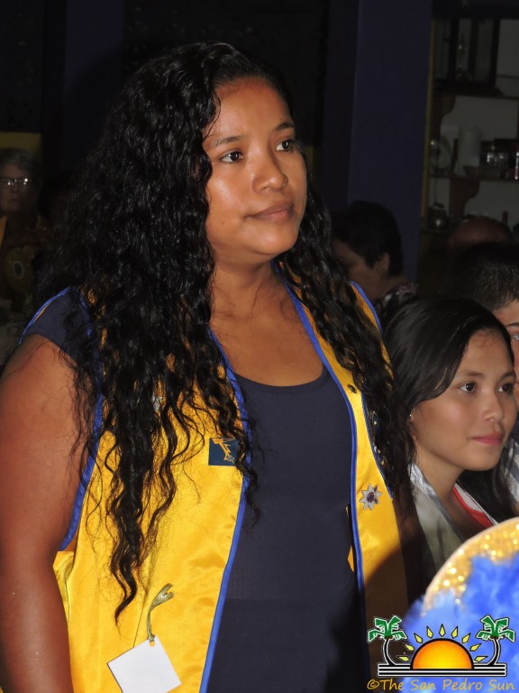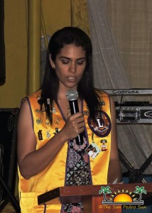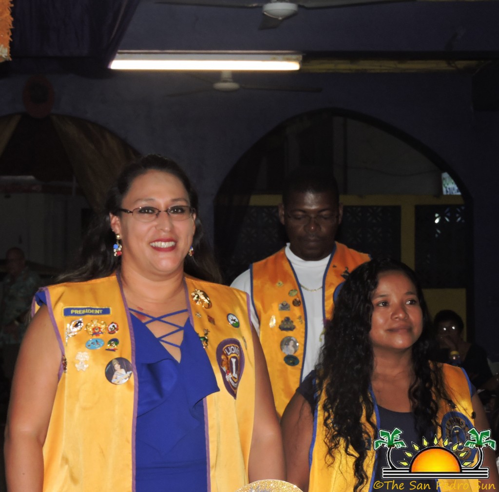 After the National Anthem was sung by all, Father Scott from the San Pedro Roman Catholic Church led the invocation. Salazar then asked for a moment of silence to remember recently departed Lion members. San Pedro Lions Queen Erica Bodden gave the welcome address, and Belize Zone 59 Chairlady, Zoe Zetina of Belize City, had the honor of installing the new Board of Directors for both the San Pedro Lions and the San Pedro Leos Club.