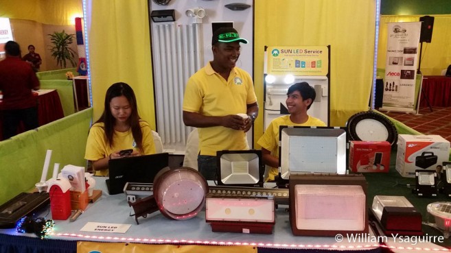 Among the energy solutions offered were the energy-mizer lights from Light Emitting Diodes (LED), which produce the same amount of light as conventional incandescent or fluorescent bulbs for a fraction of the energy consumption. Energy Management Ltd took it a step further by offering LED light units powered solely by solar panels which charge a battery to power the lights at night. The units are self-contained and weather-proofed for easy installation and low maintenance, with no light bill for electricity from the grid. Sun LED Service offered similar lights in flood lamp size.