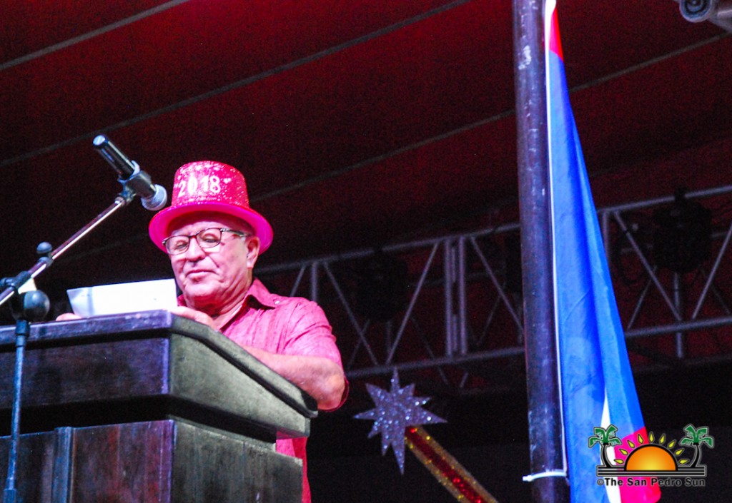 Prior to the official countdown, members of the local authorities observed a few formalities. After an invocation by Pastor Clive Welsh, Mayor Daniel Guerrero shared a few words with the massive crowd at the park. Guerrero wished the best to everyone present as 2017 faded away. “As we come to the close of 2017 it is time to turn our attention to the year ahead and to plan for the future as individuals and as The San Pedro Town Council,” he said. “As the Mayor of this town, I am proud to say that we have a great community, which always knows to come together in unity and strength during the good and bad times and rally our people. Perhaps that singular spirit of community togetherness is what put us far ahead of other tourism destinations. For that reason, it is my hope that each and every one of you looks to the future with a positive evaluation to make this year 2018 the best yet.” Guerrero also noted that 2017 has been a busy year for the Town Council as they worked hard for the benefit of the residents and the island community.
