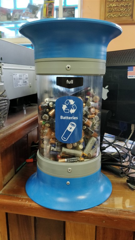 According to Norton, in October 2017 she asked Harmouch Hardware if they would be willing to place a battery recycling container in their store if she would purchase and ship it to them. They generously said yes. She also approached Castillo’s Hardware Ltd, and they were also willing to be a part of the battery recycling project. Sara Reza of Have Fun Stay Fit helped by reaching out to SP Hardware, who was more than happy participate as well. With three of the largest hardware stores on board, the project was well on its way.