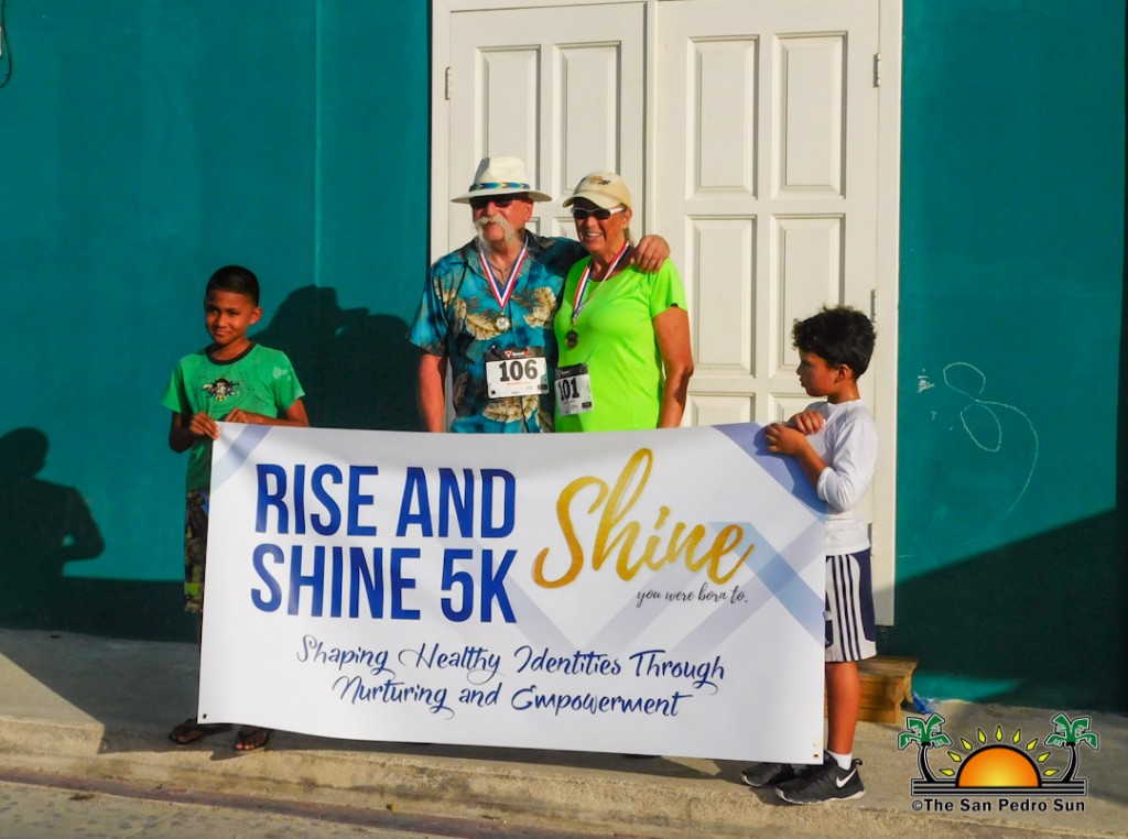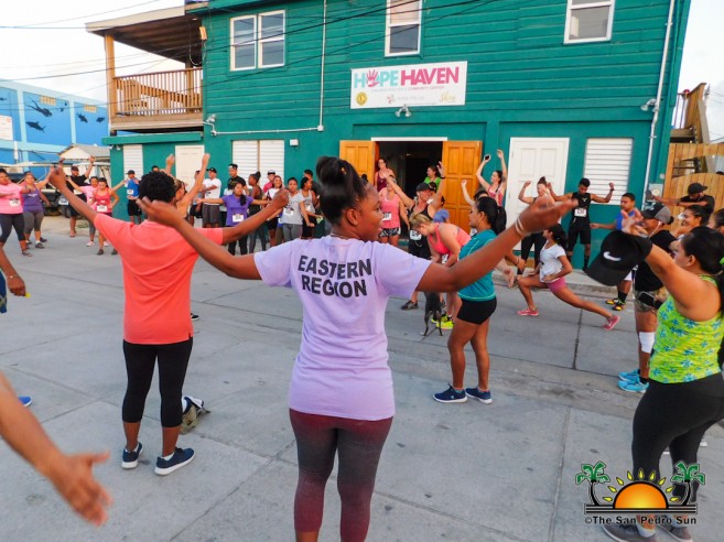 At 5AM, a large crowd gathered in front of the Hope Haven & SHINE Center located on Lion Street. Before the race began, Kent Gabourel, Sports Coordinator at The San Pedro Town Council thanked everyone for supporting the fundraiser. SHINE Representative Britney Travis led participants through some warm-up routines, after which the 5K run/walk immediately began. The designated route saw participants running/walking their way to the bump after El Divino and back.