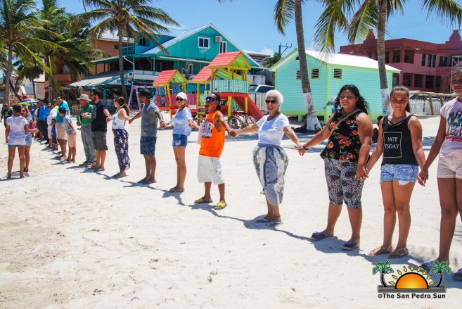 Ambergris Caye residents joined thousands of Belizeans on Saturday, May 19th for the annual ‘Hands across the Sand’ in an effort to highlight the issues that threaten Belize’s marine natural resources. The event is organized by Oceana in Belize and encourages Belizeans at home and abroad to love Belize and to protect its unique marine wealth for future generations to come.