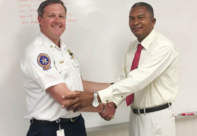 Press Release – MINISTRY OF TRANSPORT AND NATIONAL EMERGENCY MANAGEMENT – May 23, 2018 – Currently on a trip to the United States, Belize’s Fire Chief, Ted Smith, has visited two Belizean firefighters studying in Virginia, USA. The two firefighters, Patrick Parks and Johnny Cardenas, are a six-month training course at the Hanover Fire Academy. Fire Chief Smith says he is trying to secure similar scholarships for two more Belizean firefighters to study at the Hanover Fire Academy.