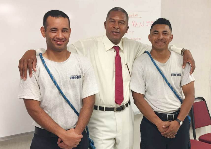 Press Release – MINISTRY OF TRANSPORT AND NATIONAL EMERGENCY MANAGEMENT – May 23, 2018 – Currently on a trip to the United States, Belize’s Fire Chief, Ted Smith, has visited two Belizean firefighters studying in Virginia, USA. The two firefighters, Patrick Parks and Johnny Cardenas, are a six-month training course at the Hanover Fire Academy. Fire Chief Smith says he is trying to secure similar scholarships for two more Belizean firefighters to study at the Hanover Fire Academy.