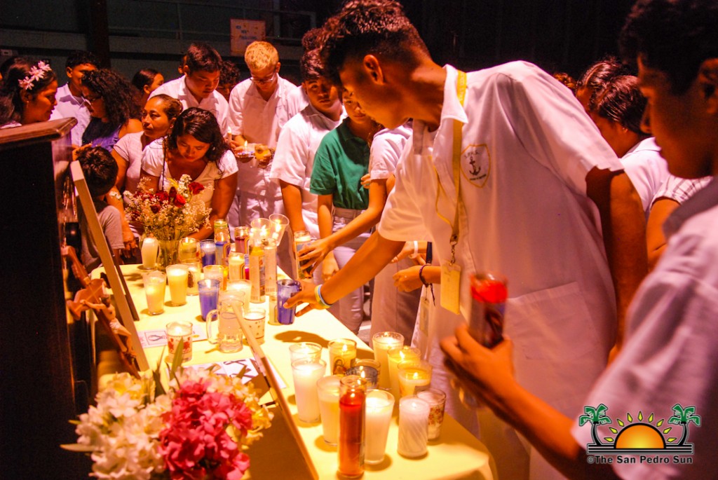 The San Pedro High School (SPHS) hosted a candlelight vigil on Tuesday, June 12th in honour of one of their students, Allan Nuñez, who died in a tragic fire earlier that day. The fire gutted Allan’s family residence in the Escalante Sub-division and sadly also took the lives of his mother Clara Bacab Nuñez, his little sister 6-year-old Mia Nuñez, and cousin, 16-year-old Shirley Bacab. They remained trapped inside the burning structure while the father David Nuñez, and older brother, 16-year-old Samir Nuñez, managed to escape the inferno with severe injuries. At the vigil at the high school auditorium, fellow students, teachers, staff and islanders remembered the Nuñez and Bacab family with songs and emotional speeches.