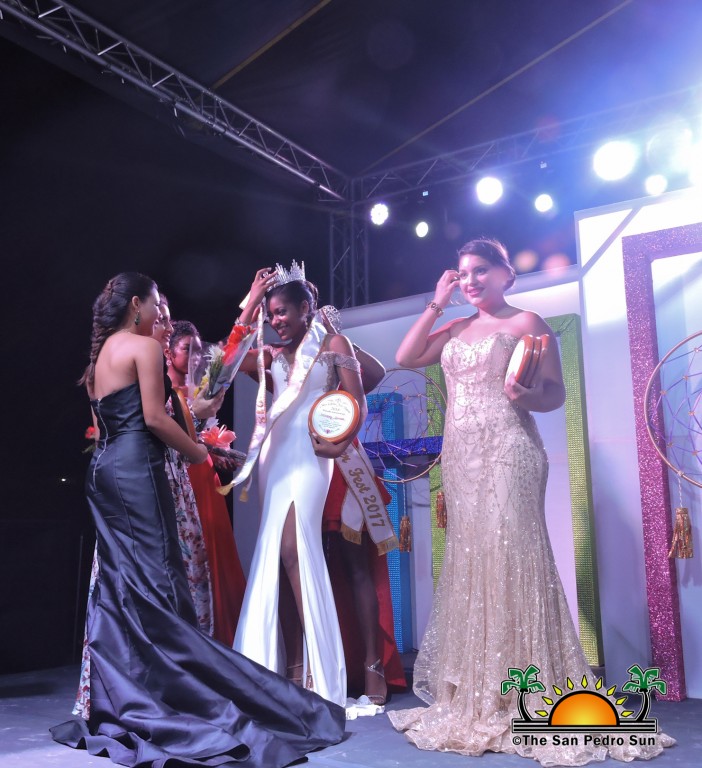 After the scores were tallied the highly anticipated awards were announced. The Miss Amity award went to Meloney Arnold, while Normari Blanco was awarded with Miss Popularity, Miss Creativity, and Miss Photogenic. Valerie Arnold took the first runner-up title and the crowd cheered as Meloney Arnold was crowned Miss Caye Caulker Lobster Fest 2018-2019.