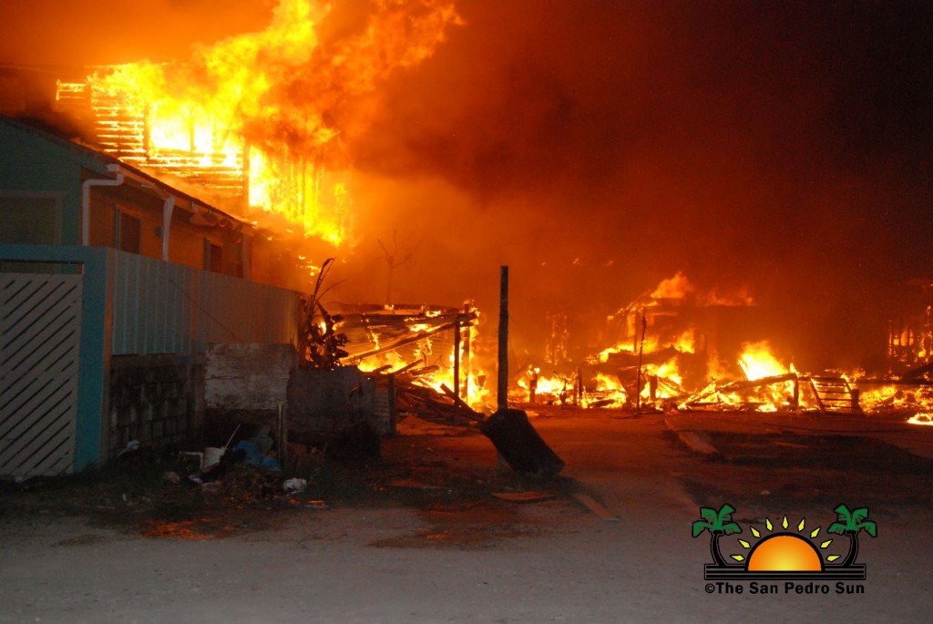 A devastating fire in the Boca del Rio area north of San Pedro Town destroyed six houses early this morning, Saturday, August 4th. The fire reportedly started shortly after 1AM, no injuries have been reported, but many persons are now homeless as the blaze destroyed everything in its path. The fire threatened to spread to nearby houses, but thanks to the efforts from the San Pedro Fire Department and the many volunteers who battled the fire for hours, a larger tragedy was avoided. Residents, however, believe that is time for local and central government authorities to look seriously into this matter and provide the fire department on the island with the adequate resources and equipment to better address such emergencies.