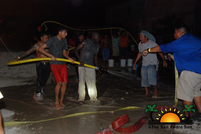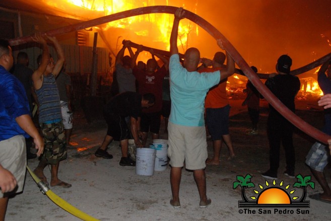 Councilors from The San Pedro Town Council also joined in the efforts as more people showed up to help. Determined to win the fight against the blaze, many islanders dangerously bucket and hosed the giant flames, until finally around 4AM, their perseverance paid off. By this time, no structure was left inhabitable, and the fire gutted all the wooden homes and most of their surroundings.