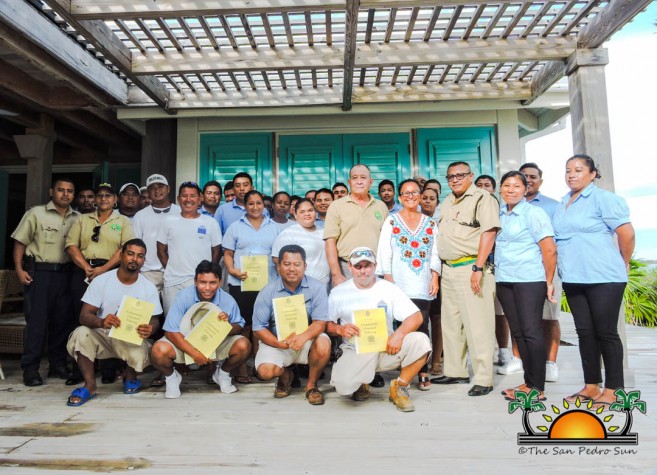 According to National Auxiliary Police Coordinator, Rudolph Orio the Tourism Watch program is a one-day training that is facilitated to business employees, teaching them how to handle certain incidents and improve their safety. “The program is something like the neighborhood watch programs, however, this one focuses more on protecting our tourism industry,” said Orio, “Throughout the day, employees of the resort learn about observation skills, how to react to situations, techniques and much more.” Orio also stated this training is open to all businesses of San Pedro Town, as well as across the country.