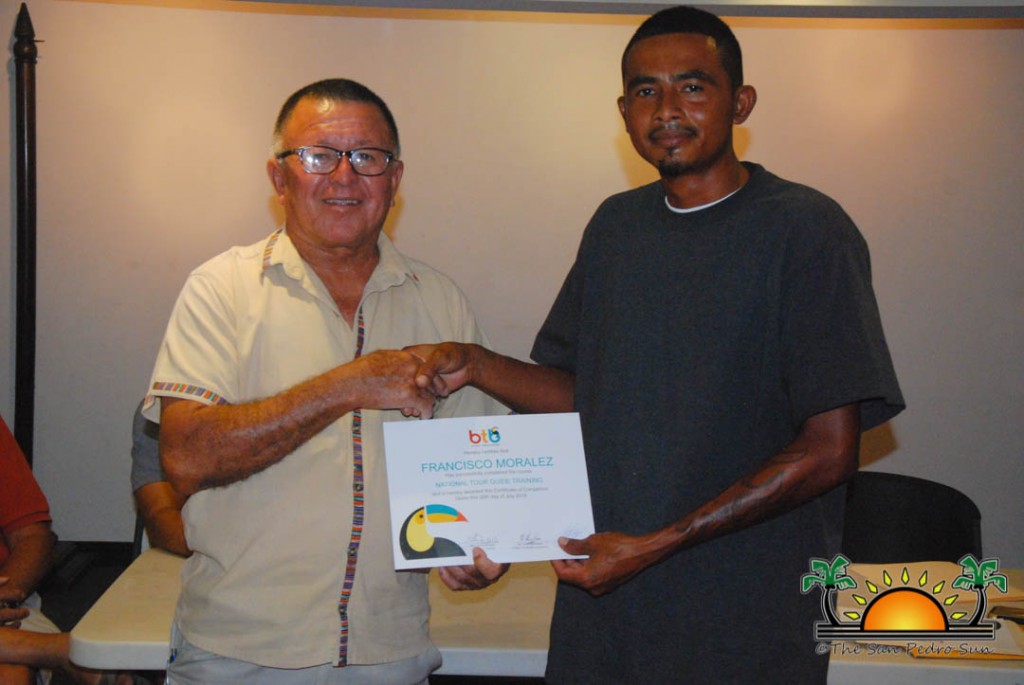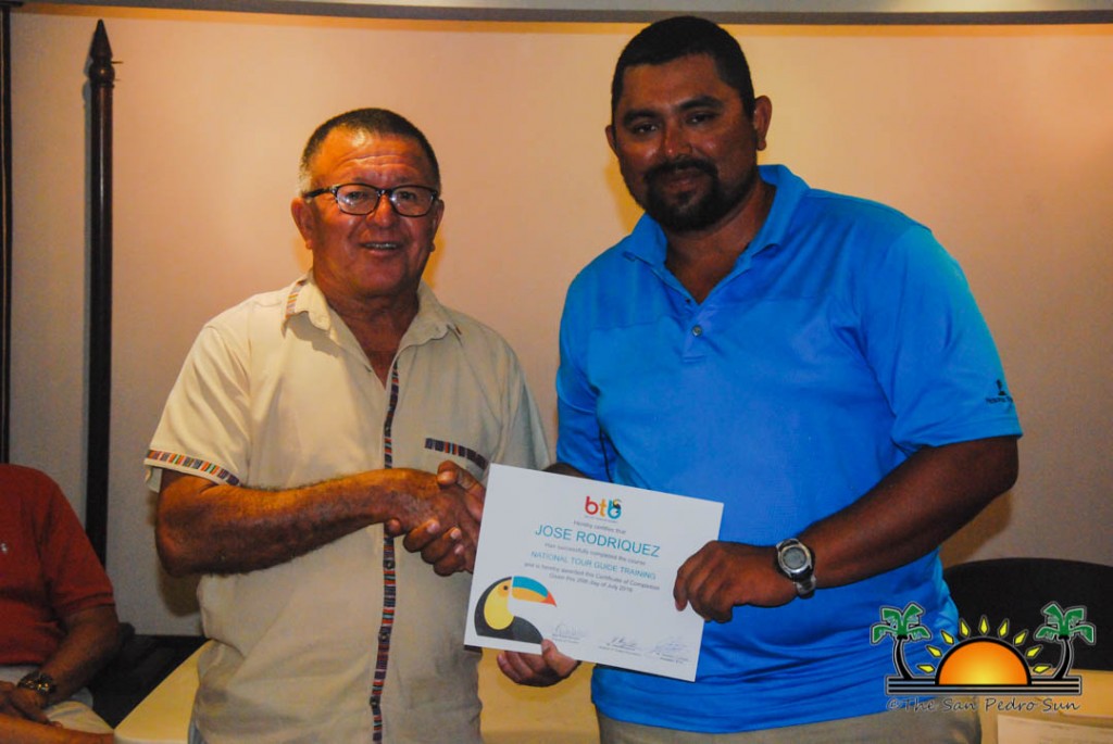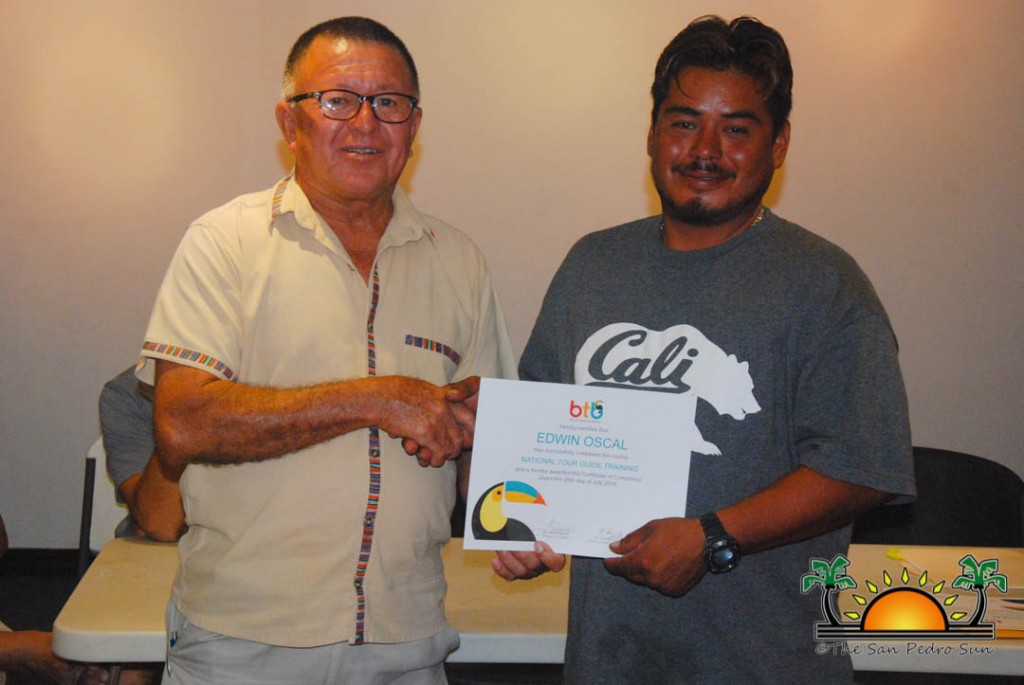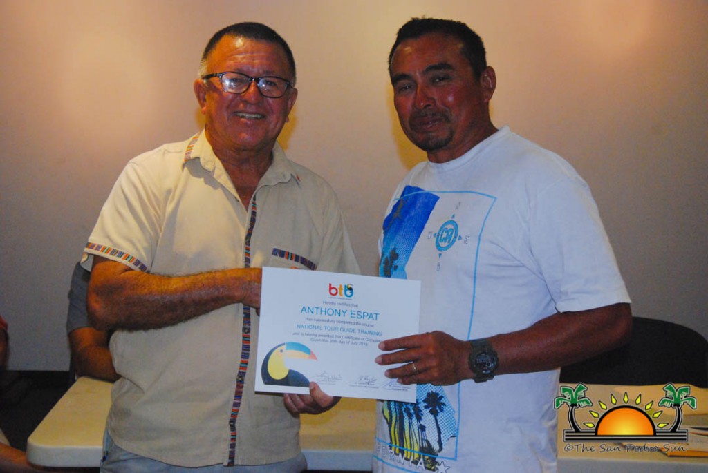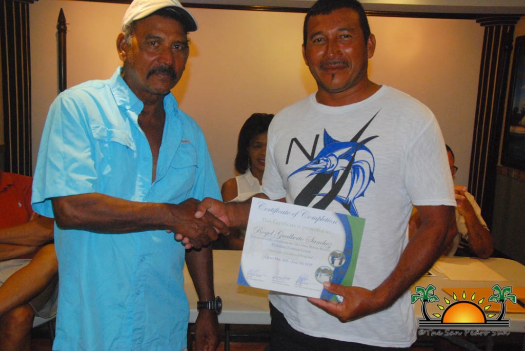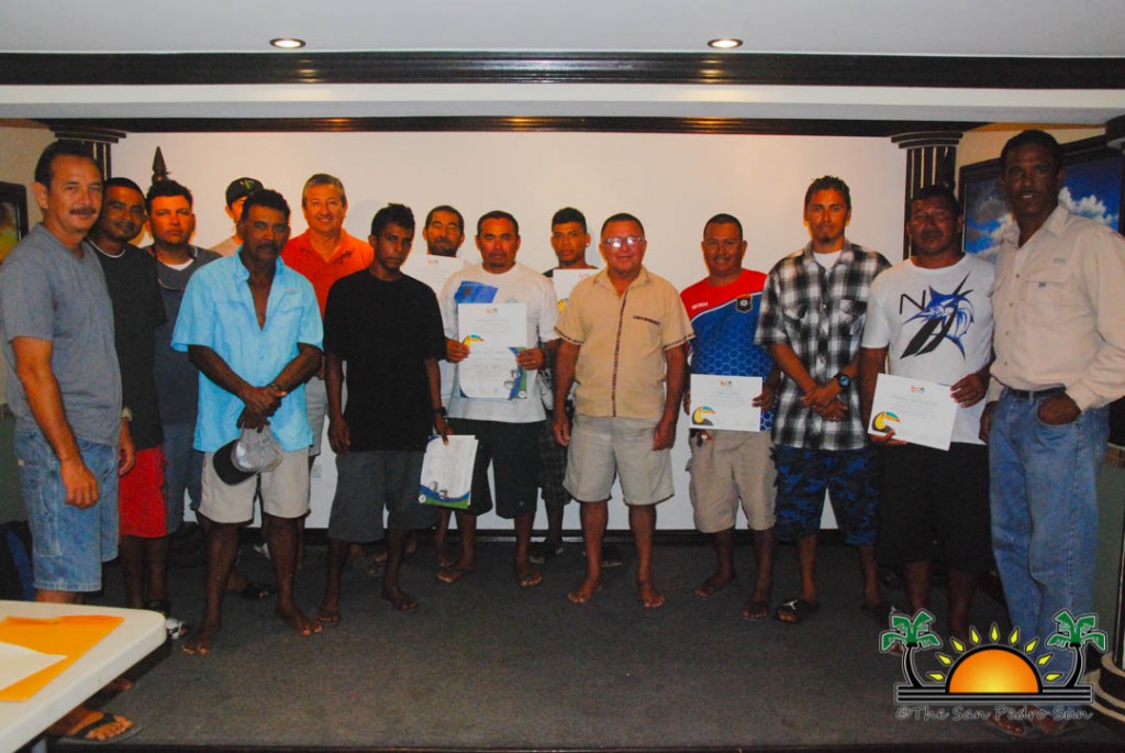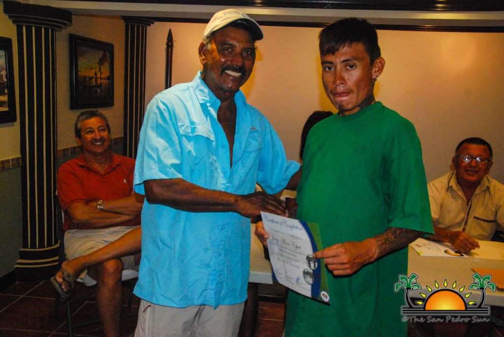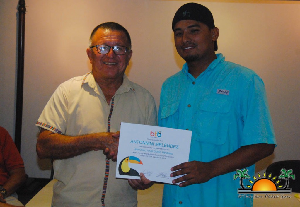 On Thursday, September 6th a group of island residents, including commercial fishermen, were recognized with certificates for completing a three-month course in tour guide and fly-fishing training. During a special ceremony held inside the The San Pedro Town Council conference room, Mayor Daniel Guerrero, along with Minister of Tourism and Civil Aviation Honourable Manuel Heredia Jr., Director of Tourism at Belize Tourism Board, Karen Bevans, Miguel Alamilla representing Hol Chan and president of the San Pedro Tour Guide Association, Philip ‘Billy’ Leslie, were on hand to congratulate the new tour guides and wish them well in their new venture.