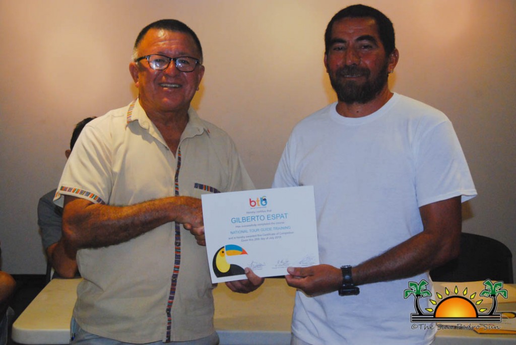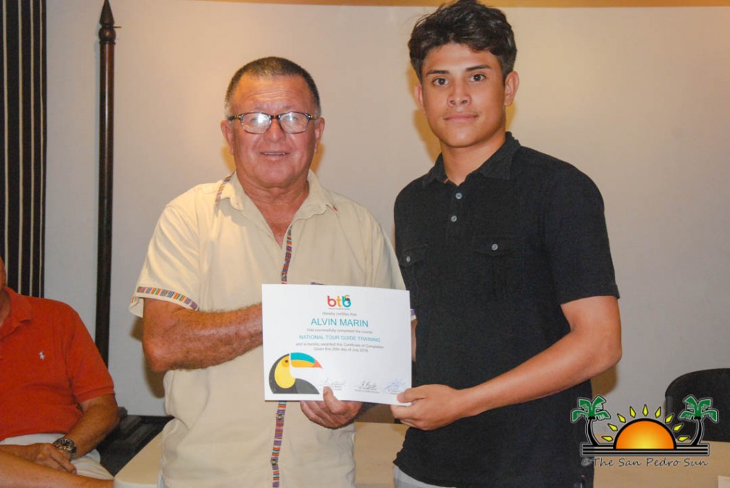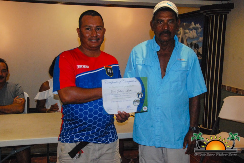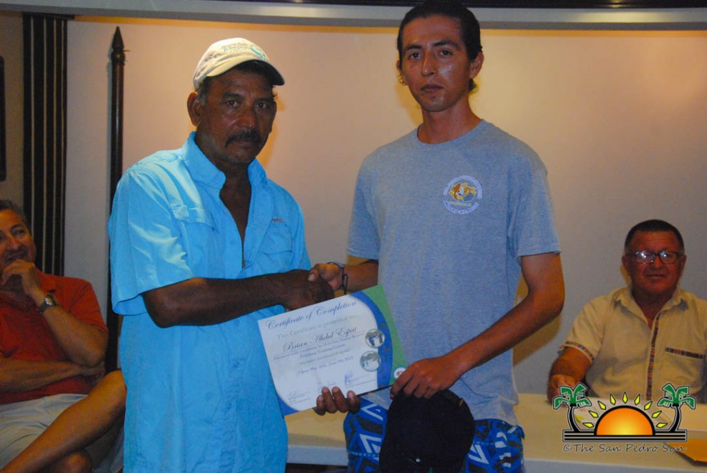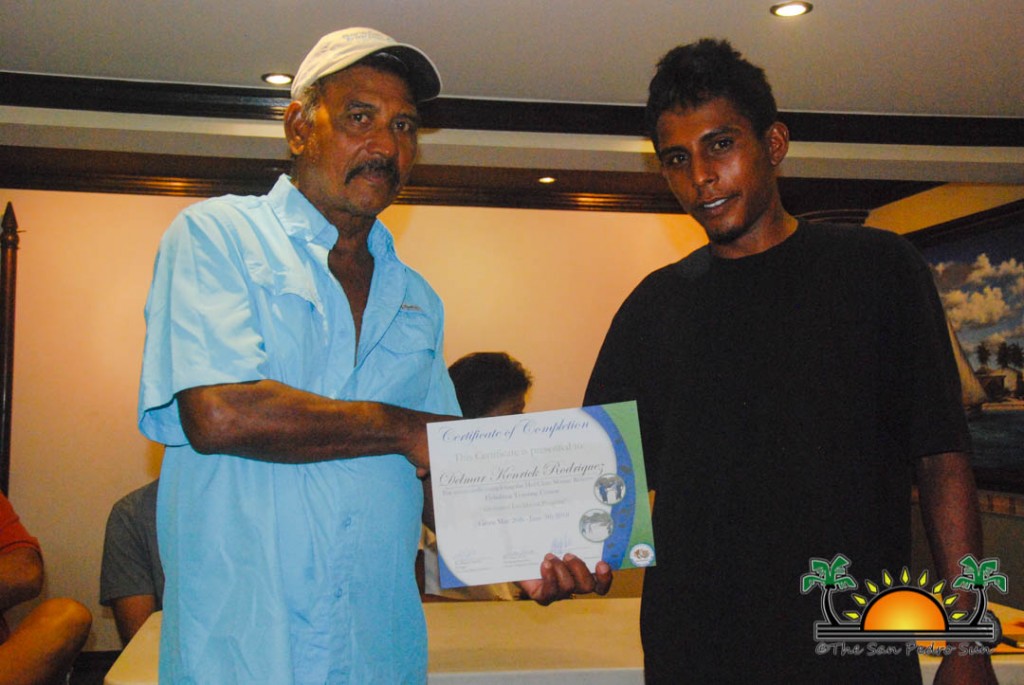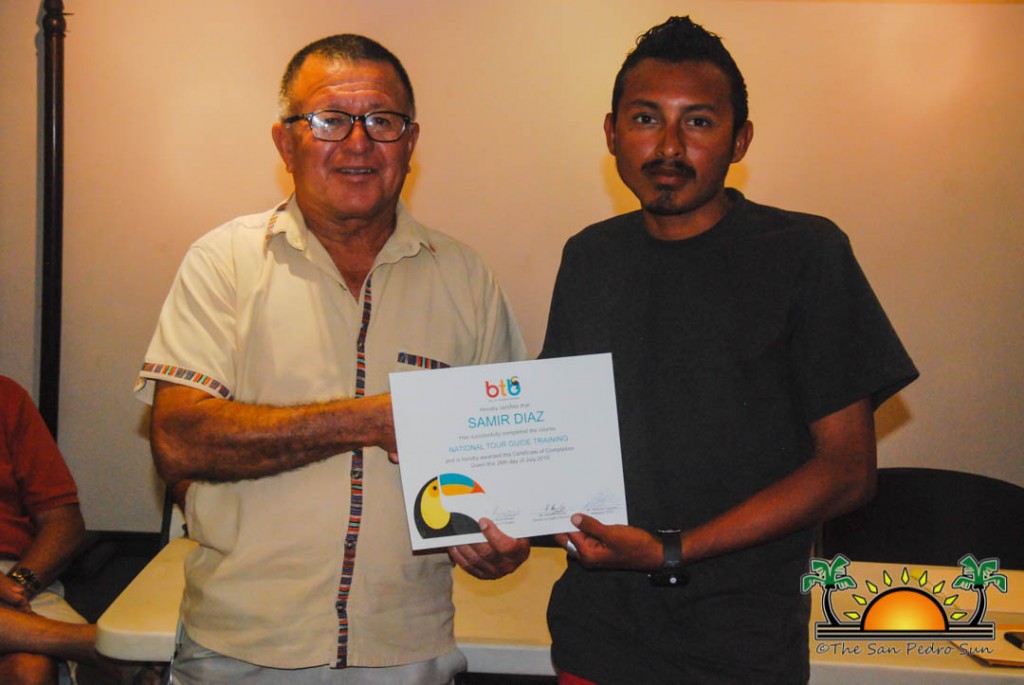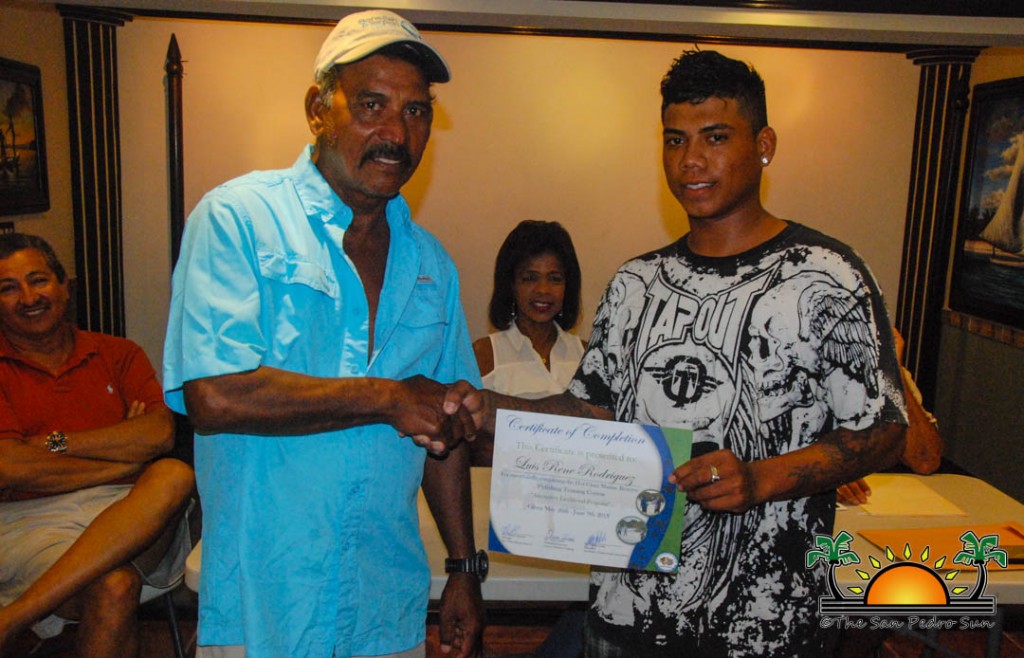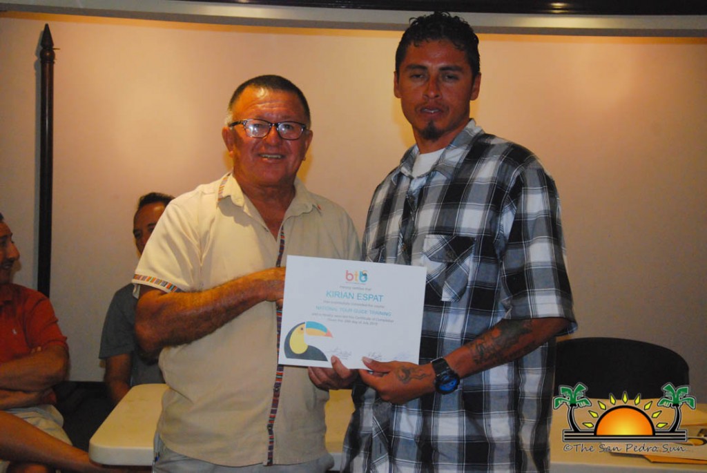 On Thursday, September 6th a group of island residents, including commercial fishermen, were recognized with certificates for completing a three-month course in tour guide and fly-fishing training. During a special ceremony held inside the The San Pedro Town Council conference room, Mayor Daniel Guerrero, along with Minister of Tourism and Civil Aviation Honourable Manuel Heredia Jr., Director of Tourism at Belize Tourism Board, Karen Bevans, Miguel Alamilla representing Hol Chan and president of the San Pedro Tour Guide Association, Philip ‘Billy’ Leslie, were on hand to congratulate the new tour guides and wish them well in their new venture.