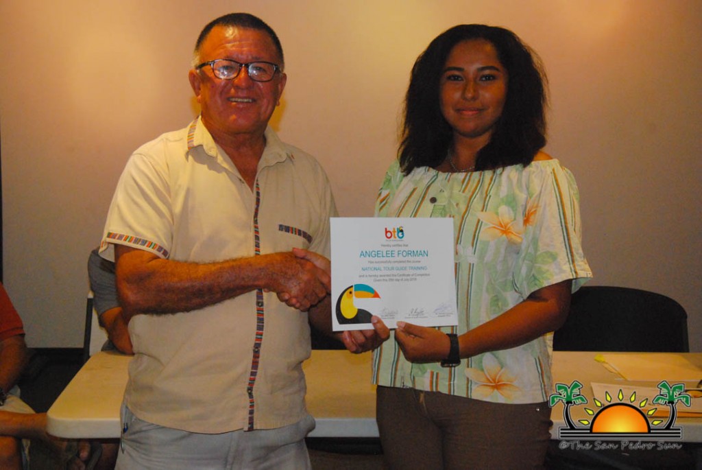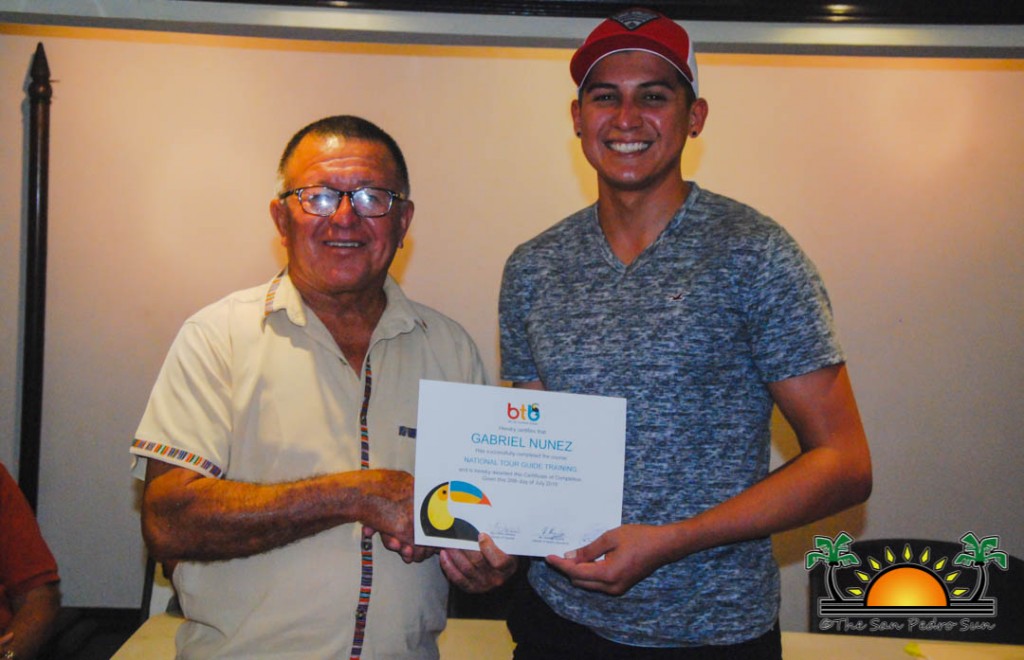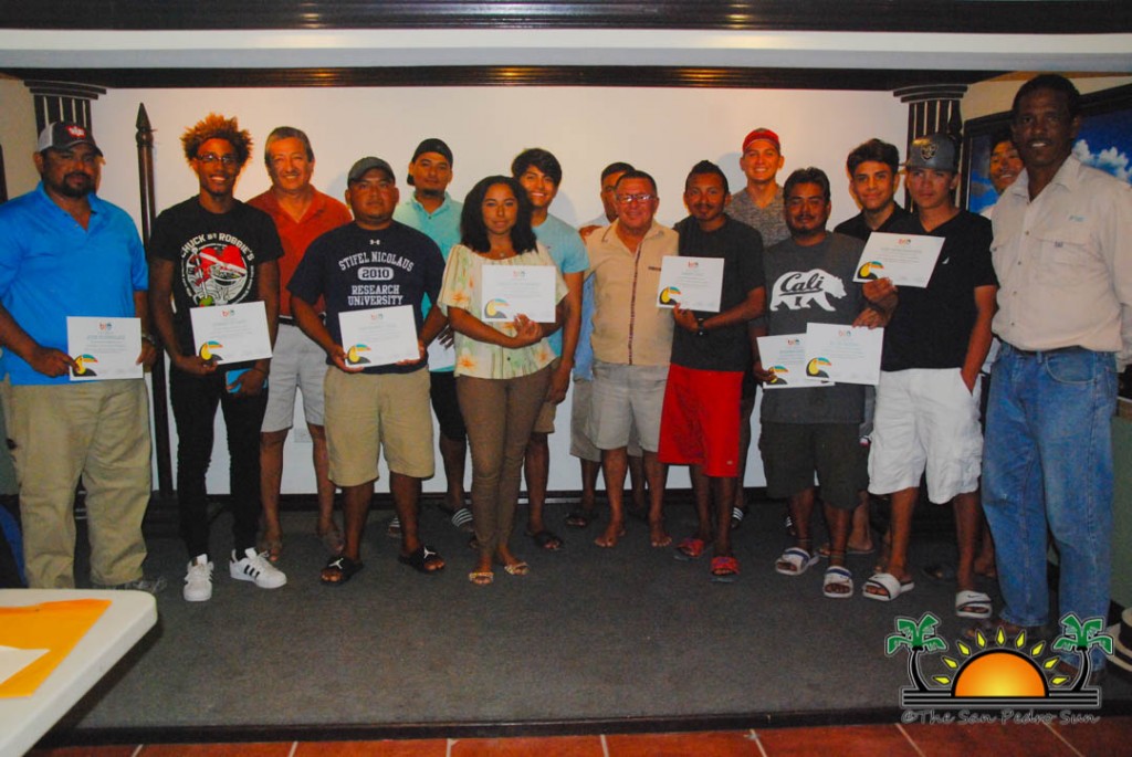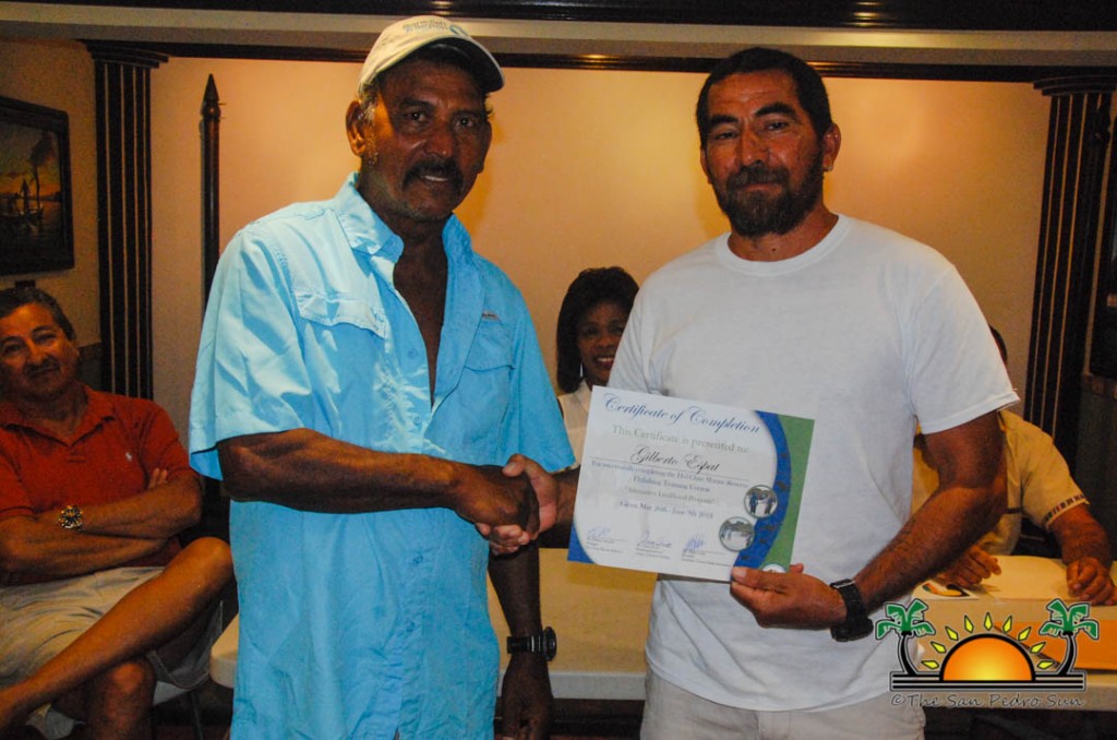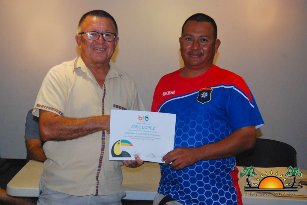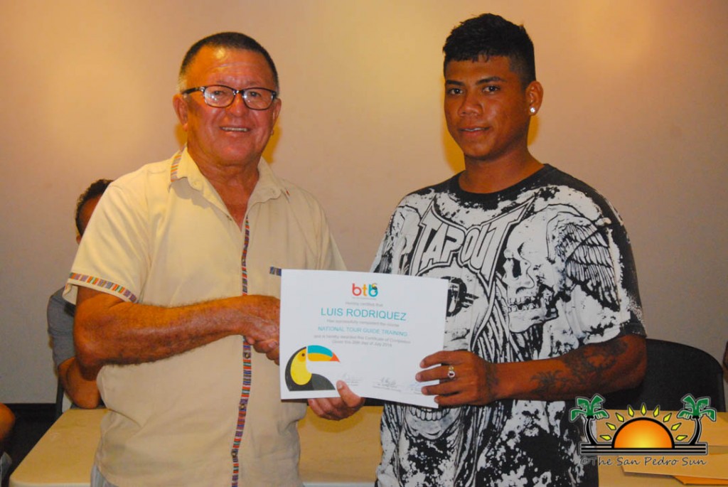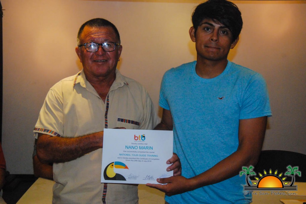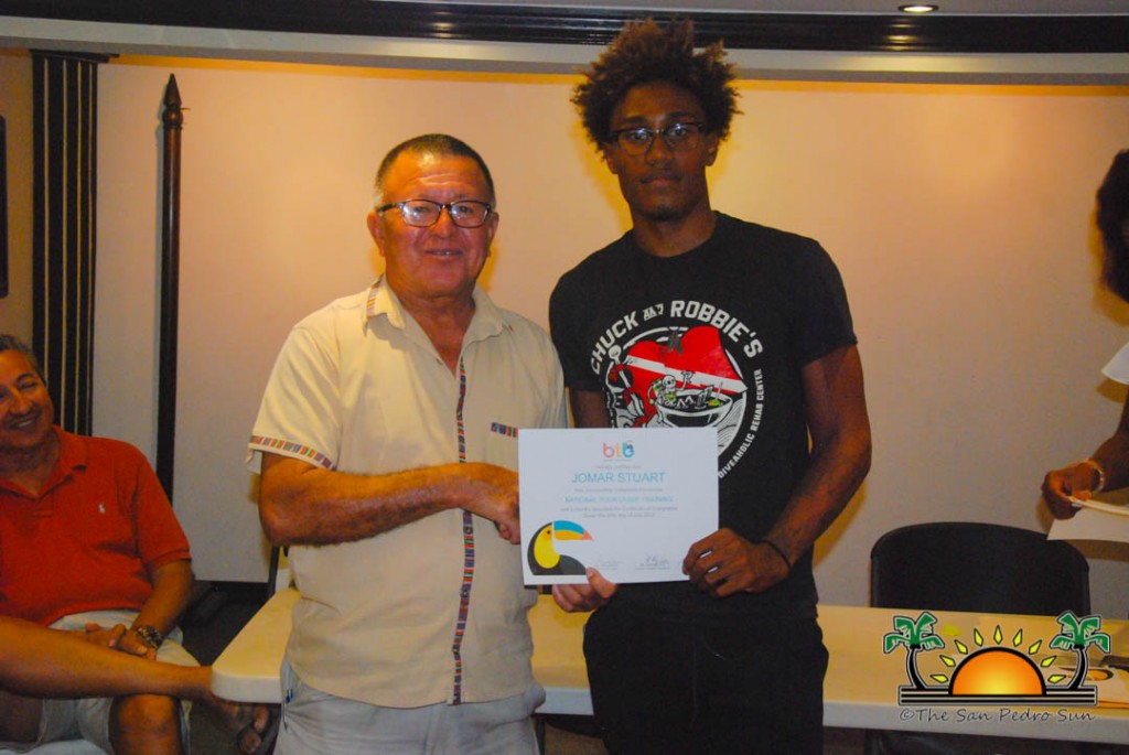 On Thursday, September 6th a group of island residents, including commercial fishermen, were recognized with certificates for completing a three-month course in tour guide and fly-fishing training. During a special ceremony held inside the The San Pedro Town Council conference room, Mayor Daniel Guerrero, along with Minister of Tourism and Civil Aviation Honourable Manuel Heredia Jr., Director of Tourism at Belize Tourism Board, Karen Bevans, Miguel Alamilla representing Hol Chan and president of the San Pedro Tour Guide Association, Philip ‘Billy’ Leslie, were on hand to congratulate the new tour guides and wish them well in their new venture.