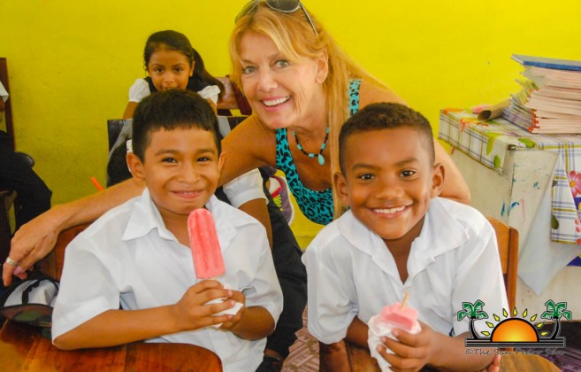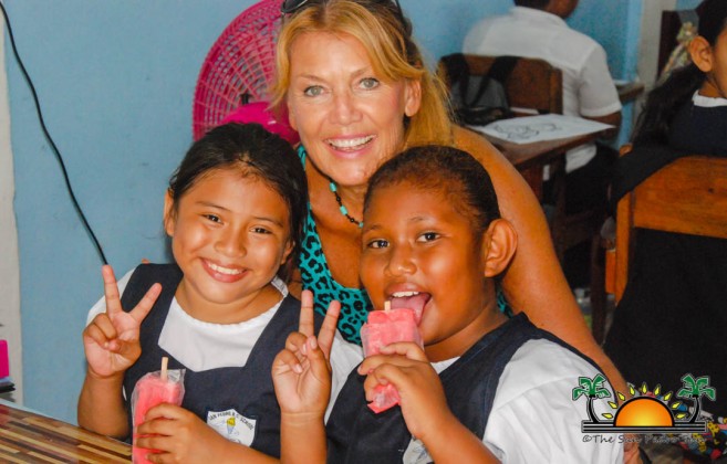 Long time island visitors Debbie and Larry Heimgartner brought sweet treats once again to the students and staff of the San Pedro Roman Catholic School (SPRCS) on Monday, October 29th. The Heimgartners, who have been doing this activity for years, were once again joined by Manelly’s Ice Cream Shop in distributing 1,000 paletas (popsicles) in the school.