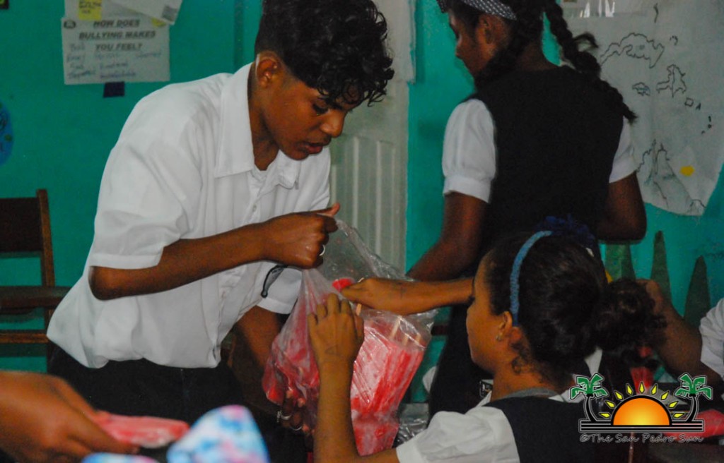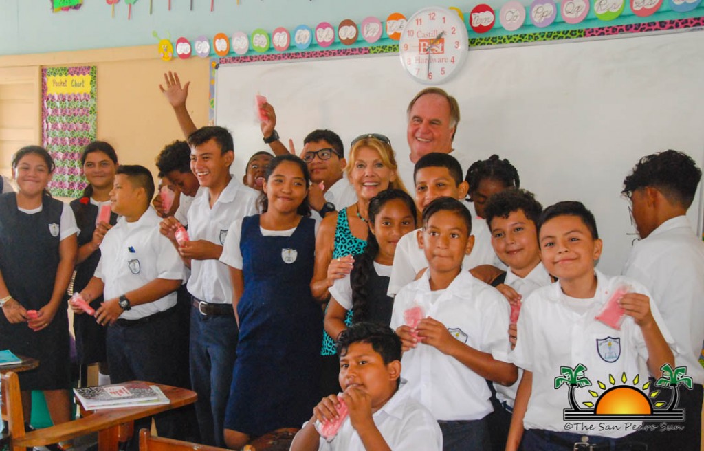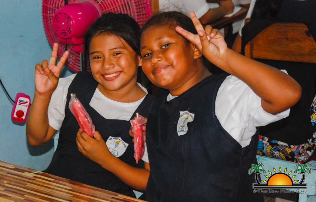 Long time island visitors Debbie and Larry Heimgartner brought sweet treats once again to the students and staff of the San Pedro Roman Catholic School (SPRCS) on Monday, October 29th. The Heimgartners, who have been doing this activity for years, were once again joined by Manelly’s Ice Cream Shop in distributing 1,000 paletas (popsicles) in the school.