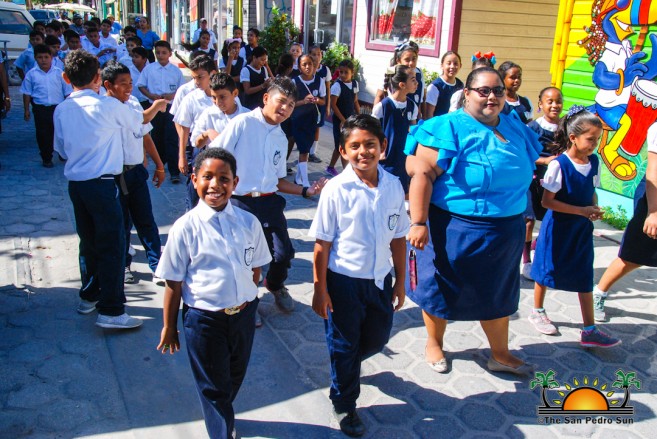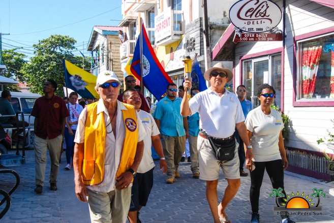 Mayor Daniel Guerrero, along with staff from The San Pedro Town Council joined the San Pedro Police Formation, members of the San Pedro Lions Club, students from primary and secondary schools along with members of the island’s Child Advisory Board in the parade. To the beat of a marching band, they marched with the torch through the main streets of downtown San Pedro.