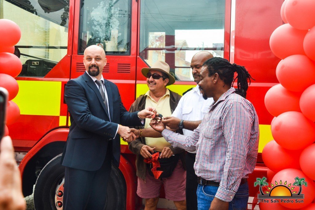 Digi Belize officially handed over a fire truck to the San Pedro Fire Department on Monday, December 17th at the fire department’s grounds in San Pedro Town. Present at the handing over ceremony was Digi Belize Chief Executive Officer (CEO) Rochus Schreiber, Mayor Daniel Guerrero, Digi Belize Chairman Nestor Vasquez, The Minister of Transport and National Emergency Management, Honourable Edmond Castro, San Pedro Fire Department Chief Buckner Gladstone and guests.
