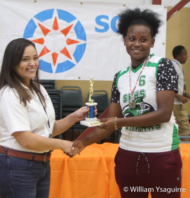 Representatives of corporate sponsor SOL Belize joined the NSSSA executive committee in presenting the championship team trophy and medals to the San Pedro High girls, while SCA received the 2nd place trophy, and Delille Academy took home the 3rd place trophy.