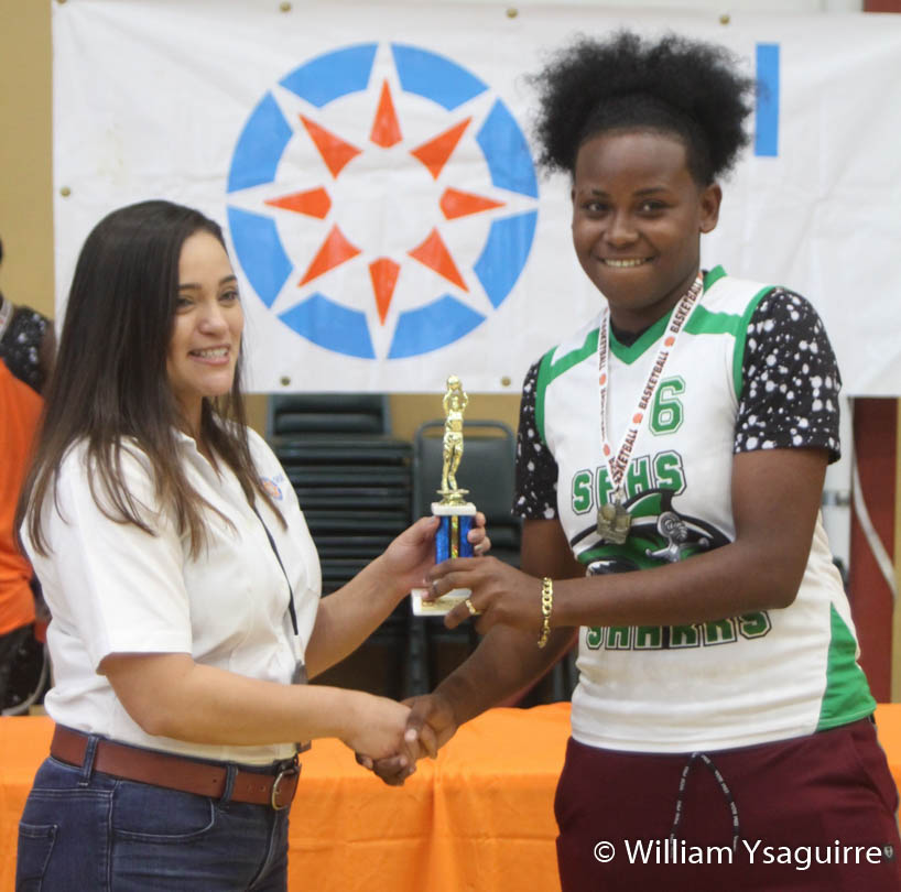 In Game One at the City Center Friday afternoon, the San Pedro girls eliminated the defending champs – the Southern Zone champs, the Delille Academy girls: 39-36, led by Most Valuable Player (MVP) Normalee Gomez with 28pts. Denissa Maerena scored another 6pts, Aaliyah Pilgrim threw in 4pts, and Sophie Guan netted a free throw. Last year’s MVP Shanell Thomas led Delille with 18pts.