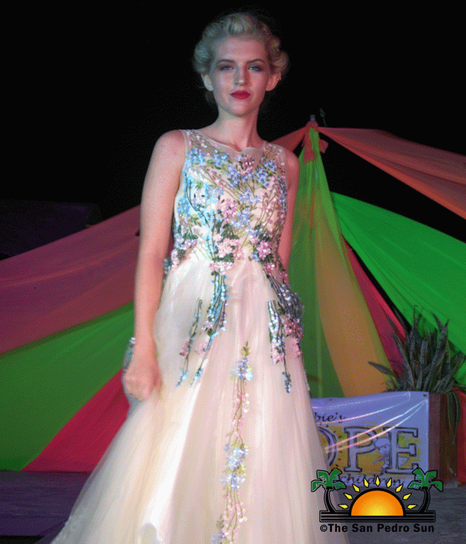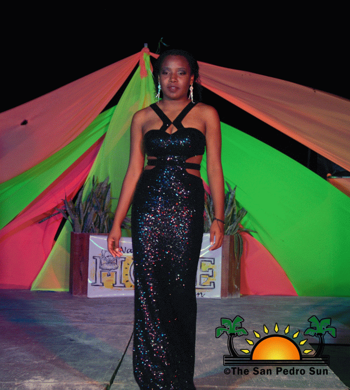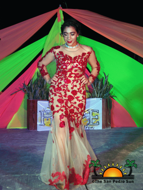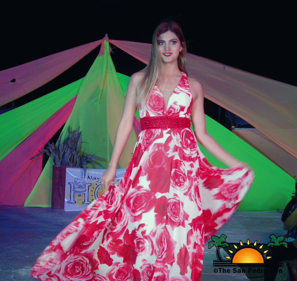 While the show continued, the food station remained busy with attendees getting their snacks and refreshments throughout the evening. The next island festivity portrayed by the models on stage was the annual Lobster Festival. The audience cheered and applauded the models as they strutted the stage in their beautiful outfits. The next segment drew even louder cheers from the crowd as each model graced the stage in patriotic colors displaying the September celebrations. A breathtaking presentation followed this as the participants showed their modeling skills in amazing nightgowns as they brought La Costa Maya Festival to life.