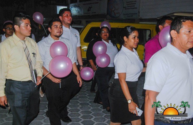A large number of island residents and even visitors joined the San Pedro Cancer Society (SPCS) on Monday, February 4th for their annual cancer awareness walk. The event to honor those who continue to fight, have lost the battle of or have overcome the deadly disease, started at 6PM sharp starting at Central Park. Led by the San Pedro Roman Catholic School marching band, the group walked through the main streets of downtown San Pedro.