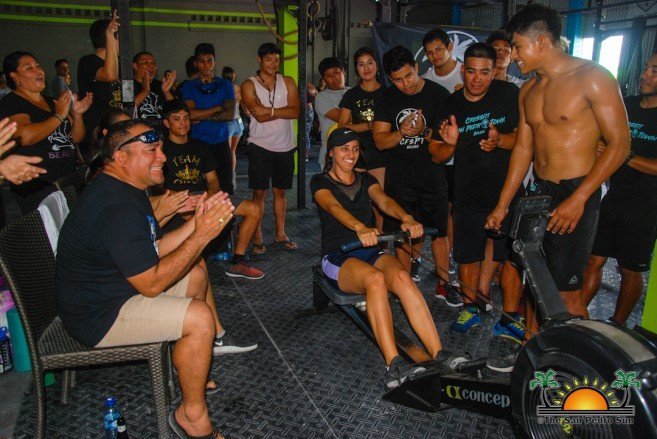 A total of 18 teams and over 100 persons participated in a marathon rowing fundraiser dubbed ‘Row for the Crown,’ on Sunday, February 10th, to help Miss San Pedro 2018-2019, Chelsea Muñoz who has been diagnosed with Hodgkins Lymphoma. Held at CrossFit San Pedro Town- on Manta Ray Street, each five-member team was tasked to raise $500, then had to row a total of 42, 195 meters (26.5 miles) in under four hours. The all-day event also included music and plenty of food and drinks available for purchase.