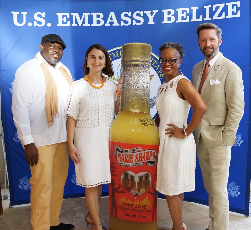 To create awareness and help the fight against gender-based violence, the Embassy of the United States of America (US) in Belize hosted the launch of ‘Pure Love,’ Marie Sharp’s Fine Foods Ltd brand-new Pineapple Habanero Pepper sauce on Thursday, February 14th. This partnership aspires to combat said abuse by having all proceeds from the pepper sauce sales benefit Haven House, a non-profit domestic violence shelter in Belize City directly benefiting victims of gender-based violence.