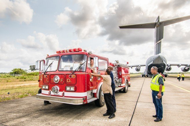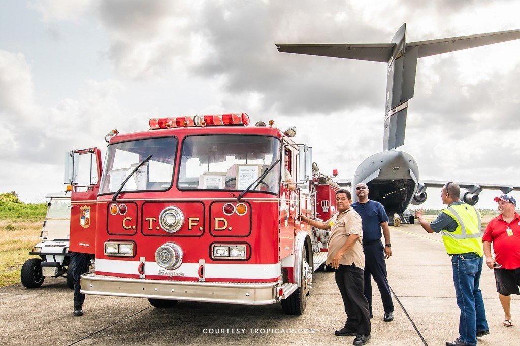 San Pedro Town will soon be the recipient of a fire truck that arrived at Belize’s Philip S.W Goldson International Airport on Wednesday, May 8th. Acquired in the United States of America (USA), the fire truck came aboard a U.S Airforce C-17 Globemaster aircraft shortly after 2PM. Arrangements are now being made to transport the truck to the island, where it is expected to be delivered to the San Pedro Fire Department in a week or two.