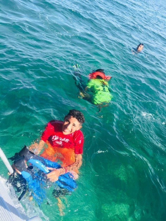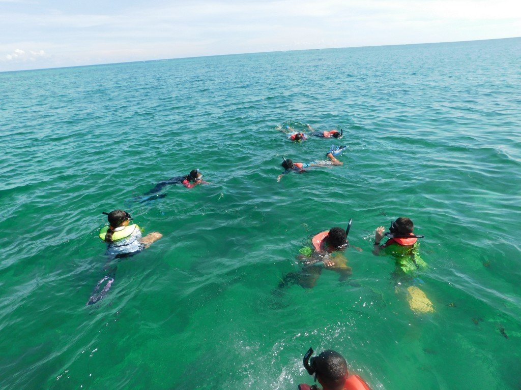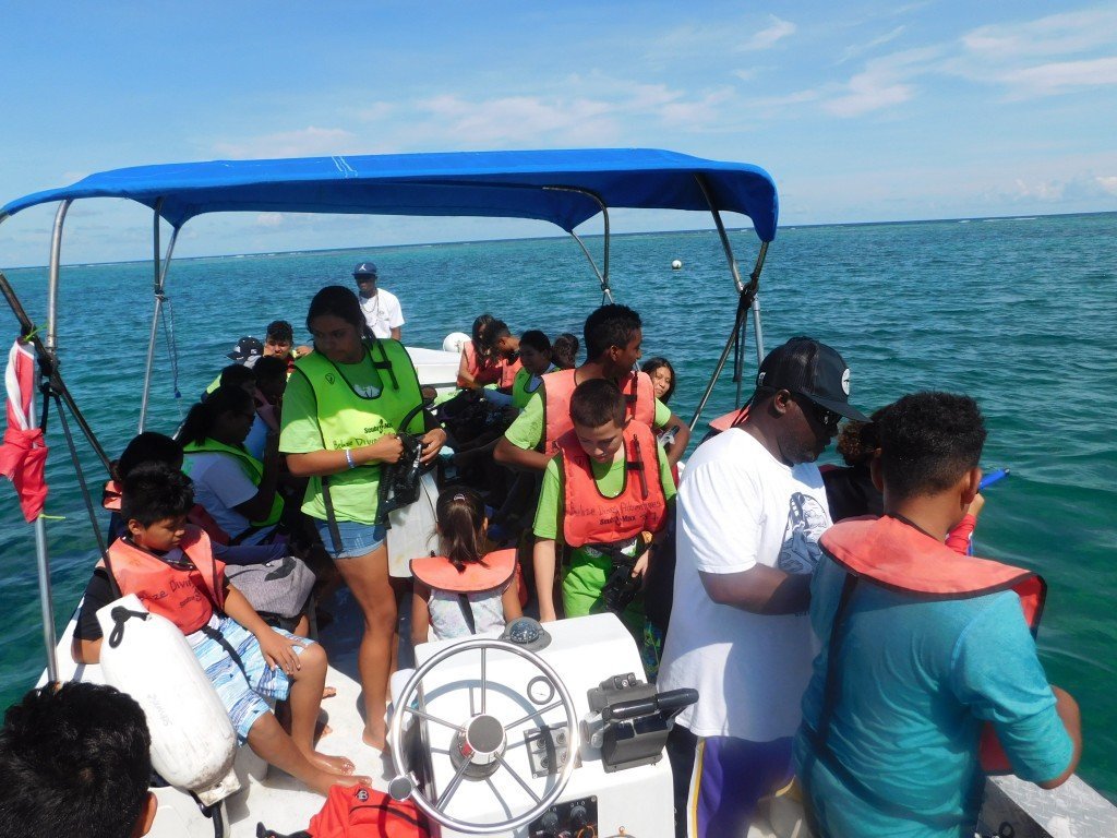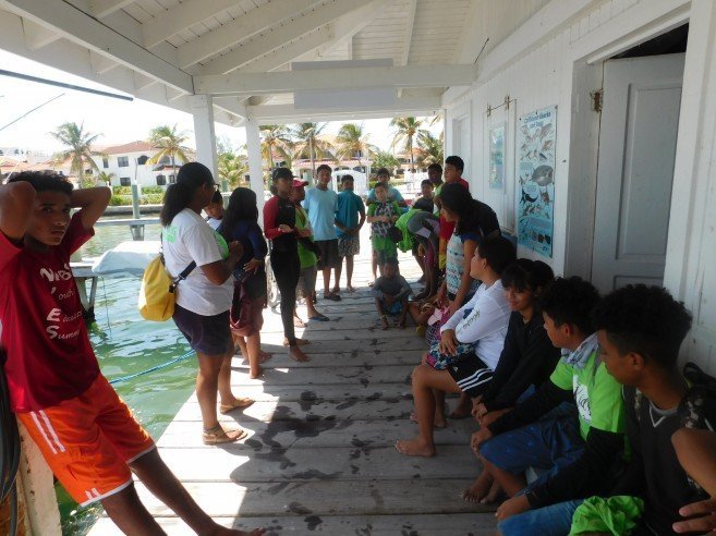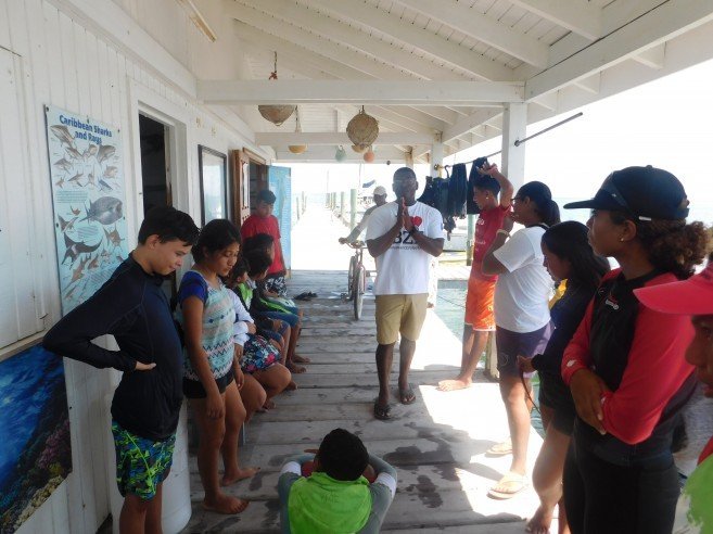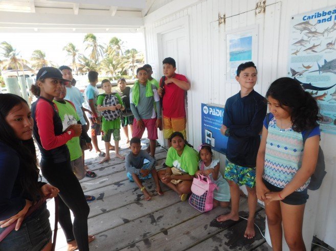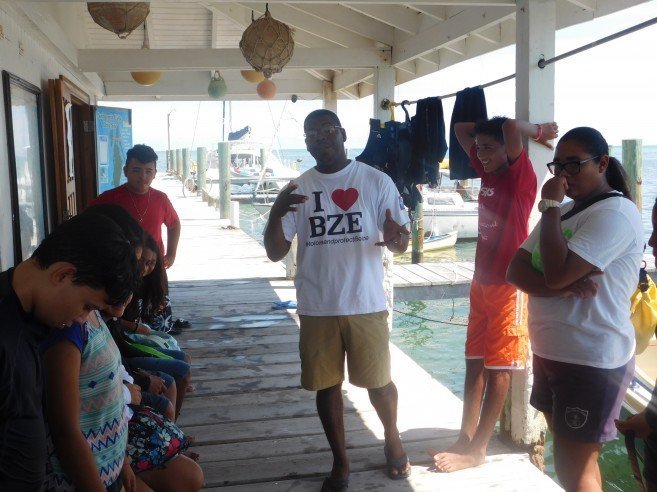 At 1PM KIA members met at Belize Diving Adventures Dive Shop for a short briefing with their instructor Brittney Garbutt, and after that headed on a boat to Mexico Rocks Marine Reserve. Mexico Rocks became a part of the Hol Chan Marine Reserve in 2015, with Zone G designated as the Mexico Rocks General Use Area for snorkeling and Zone H as a no-take zone. KIA members got to snorkel this area, learning about the abundant coral formations and other marine life they encountered. Also, most of them got to free dive down into an underwater cenote; testing their skills and lung capacities as divers. After the educational trip, the children took a short exam testing their knowledge on what they learned.