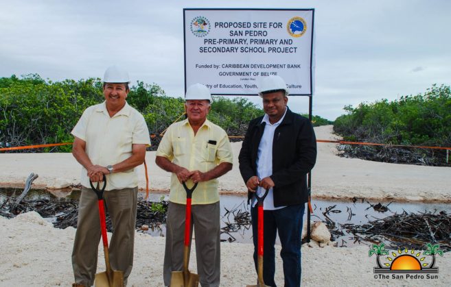 Caye Caulker Village and Ambergris Caye will soon see the construction of new schools, following an official groundbreaking ceremony held separately at both island communities on Thursday, December 19th. A new pre-school and a state-of-the art facilities will be constructed for the current Ocean Academy high school in Caye Caulker, while a pre-school, primary and high school will be constructed on Ambergris Caye, some seven miles north of San Pedro Town. Officiating the projects was Belize Rural South Area Representative Honourable Manuel Heredia Jr., Deputy Prime Minister and Minister of Education, Youth, Sports and Culture Honourable Patrick Faber and the respective members of the village and town council authorities.