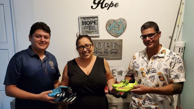 A day later, on Wednesday, January 22nd, the island’s children’s home, Hope Haven received a donation from the Ambergris Caye Masonic Lodge. The shelter received 27 pairs of football shoes for the children staying at Hope Haven. The donation was facilitated by the kind gesture of Nick Parker from the Sequoia Football Club in the United States of America. Accepting the donation on behalf of Hope Haven, was Kristina Romero.