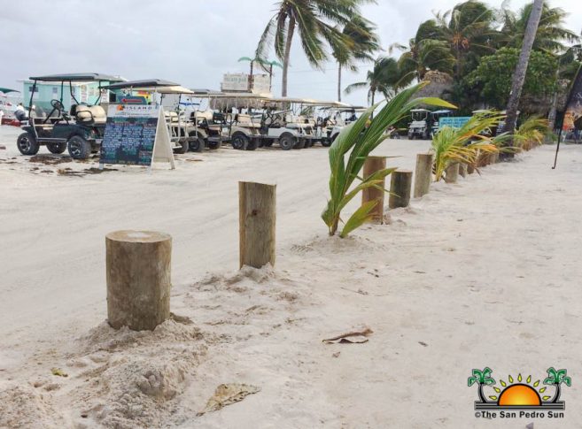 To start encouraging the new traffic regulations, a row of stumps have been planted in the middle of the beach area. The public is encouraged to begin practicing the new regulations by driving one way heading north on the left side of this barrier and to park parallel on the other side facing the sea. Mayor Guerrero indicated that the project is expected to alleviate the congestion in the area. However, when the entire Boca del Rio strip (from Sandbar Beachfront Hostel and Restaurant to Boca del Rio Park) is completely refurbished, golf carts will no longer be allowed. “It will be for pedestrians only,” he said.