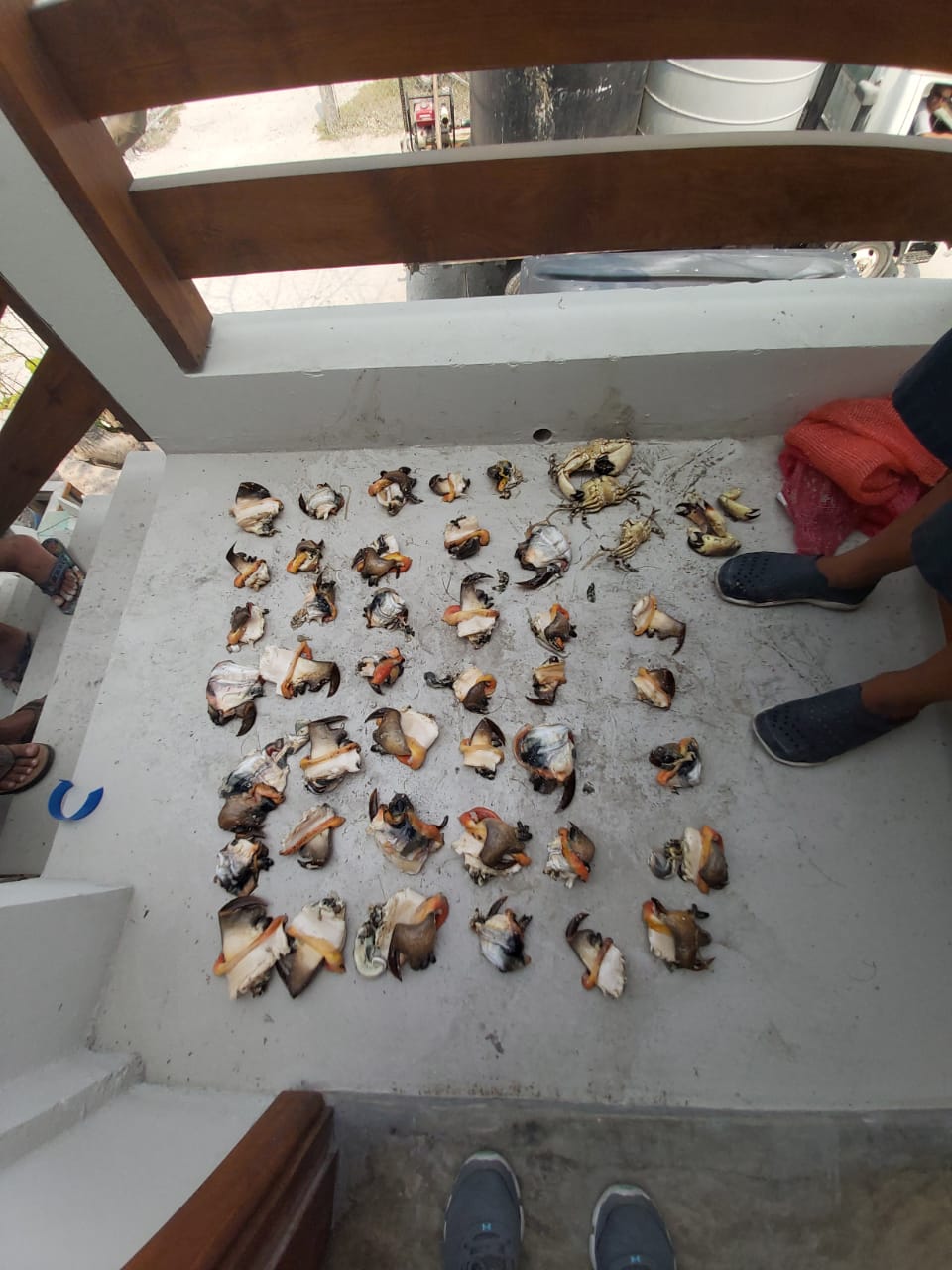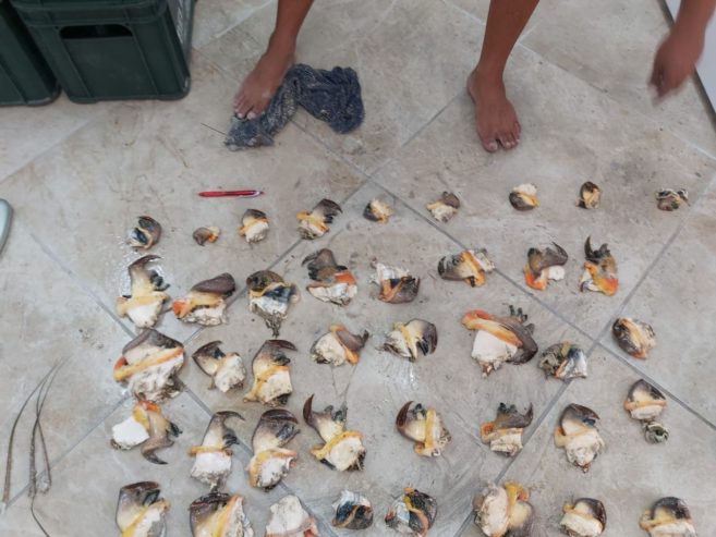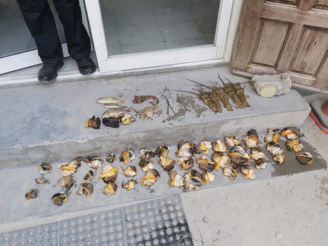 The first incident reportedly took place near the HCMR shortly after 9AM. According to Hol Chan’s Operation Manager Shalini Cawich, around 9:15 during their routine surveillance, their officer noted three individuals in the waters off the shore in the vicinity of Las Brisas dock. The fishers were monitored, and it was established that they were harvesting conch.