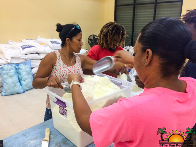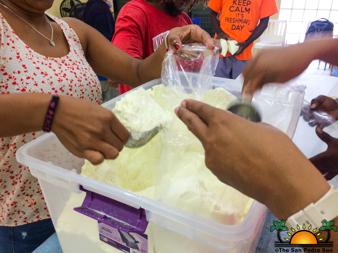 Currently, the organization operates the distribution center from a large warehouse in the Boca del Rio Area belonging to businessman Mahmoud Hassoun, a member of the Lebanese business community on the island. At the distribution centre, an army of volunteers bags groceries, loads them on golf carts and distributes them. Each family gets an amount of essential items that includes rice, beans, flour, non-perishable goods, bread, including chicken, eggs, and hygienic products, among other items at an estimated price of $170 Belize Dollars per bag.