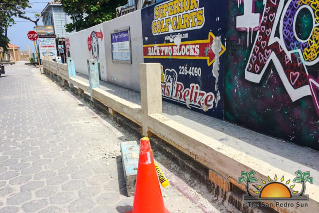 Works to rehabilitate Blake Street leading into the San Pablo Subdivision are underway by the San Pedro Town Council (SPTC). The much-needed upgrade to the streets has now extended to CocoPlum Street, where on Monday, July 6th, heavy machinery equipment was observed at work. In the downtown area, the SPTC is reconstructing the sidewalk next to the Roman Catholic Primary School.