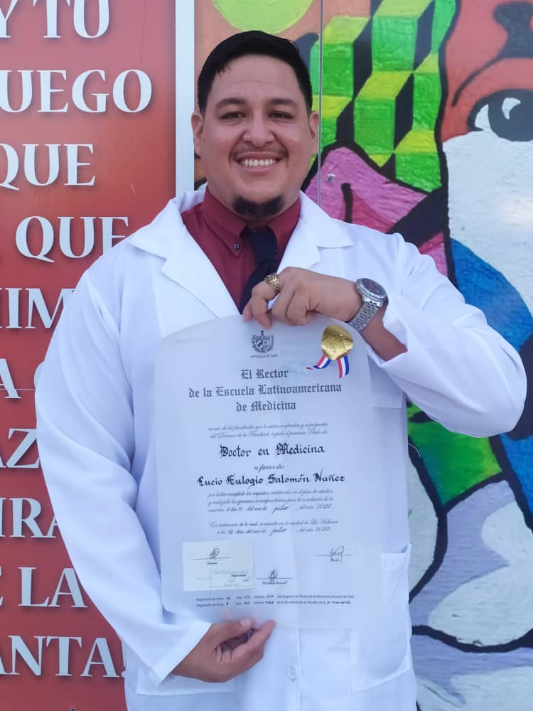 The San Pedro Sun joins the island community in congratulating one of its own, Dr. Lucio Eulogio Salomón Núñez. On Thursday, July 16th, Nuñez graduated from Escuela Latinoamericana de Medicina (Latin American School of Medicine/ELAM) as a general practitioner. He and seven other graduates have been bestowed with the honorable title of Doctor after years of study.