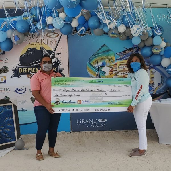The second donation came right after Grand Caribe’s fourth annual Deep Sea Classic fishing tournament on Sunday, July 19th. A shelter representative gratefully accepted a check for $5,800 BZ, and thanked event organizers and donors for their valuable contribution. The monetary donation was made possible by Caribeña Enterprises, renowned marine artist Carey Chen, and Grand Caribe.