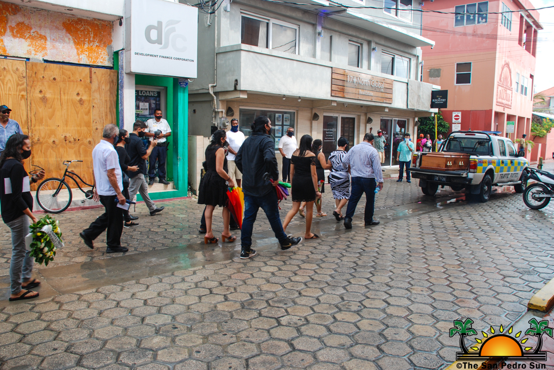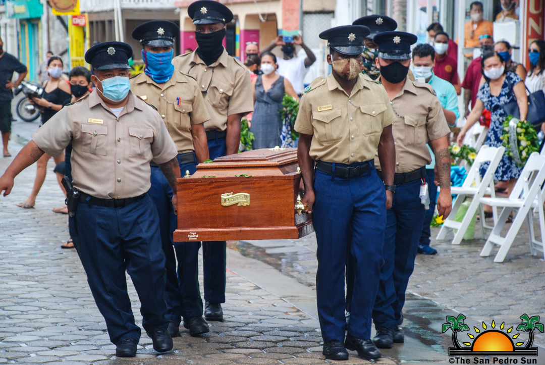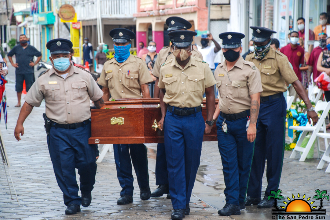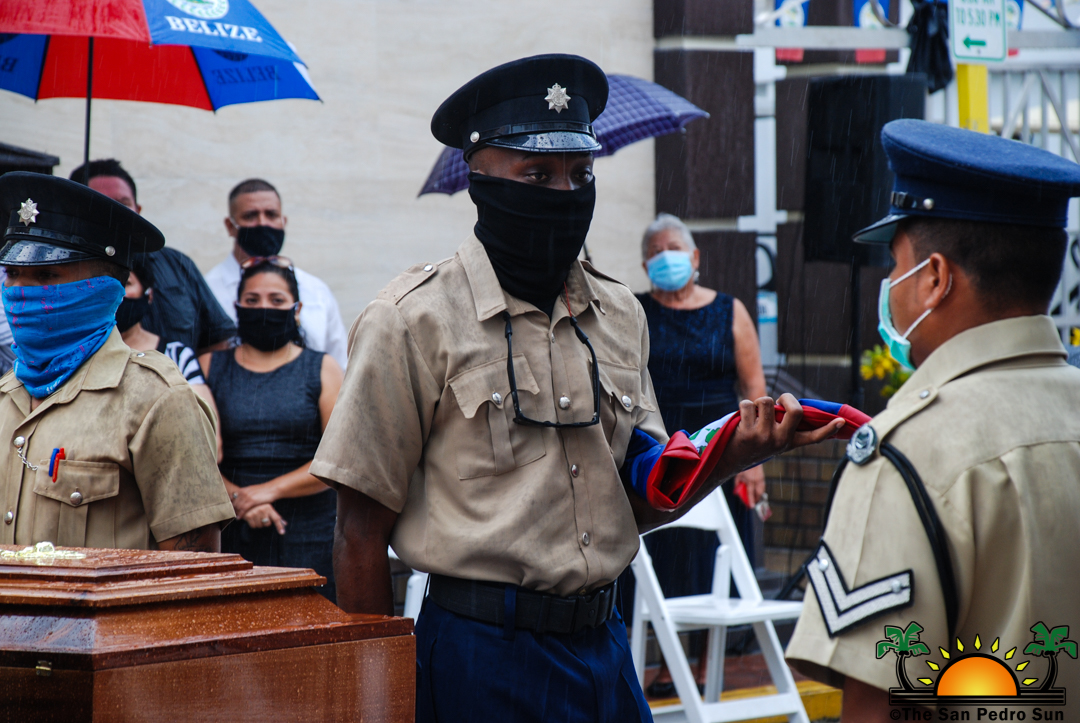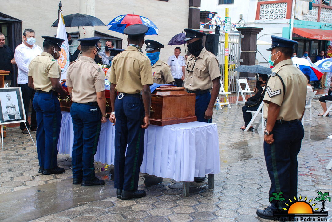 Under the rain, San Pedro Town bid farewell to its first Mayor Gilberto ‘Chico’ Gomez with an official funeral service organized by the San Pedro Town Council on Tuesday, September 29th. Family members, friends, local leaders, and the island’s police formation paid their respects and tribute to San Pedro’s father of township.