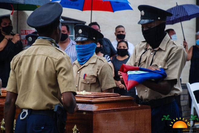 Afterward, the police handed over a Belizean flag covering the casket to Mayor Guerrero and presented it to Don Chico’s wife, Addy Gomez. Following the memorable presentation, Councillor Hector ‘Tito’ Alamilla shared the closing remarks of the program and thanked everyone for attending the funeral service.