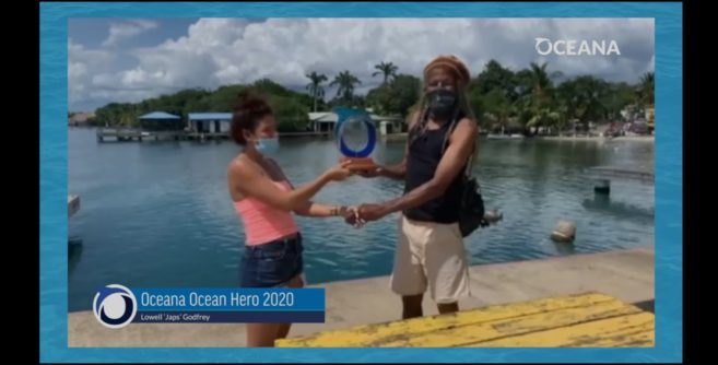 The Oceana Ocean Hero Awards began in 2009. Past award recipients are Lionel “Chocolate” Heredia, Dr. Melanie McField, former Fisheries Minister Rene Montero, Lisa Carne, Jamal Galves, Miguel Alamilla, Captain Romauldo Badillo Sr., Janet Gibson, Wil Maheia, Luz Hunter, Madison Edwards, Michael Heusner, Captain Earl David Jr, Guadalupe Lampella and Dale Fairweather. During the virtual presentation of awards to both honorees, Oceana’s Vice President, Janelle Chanona, stated